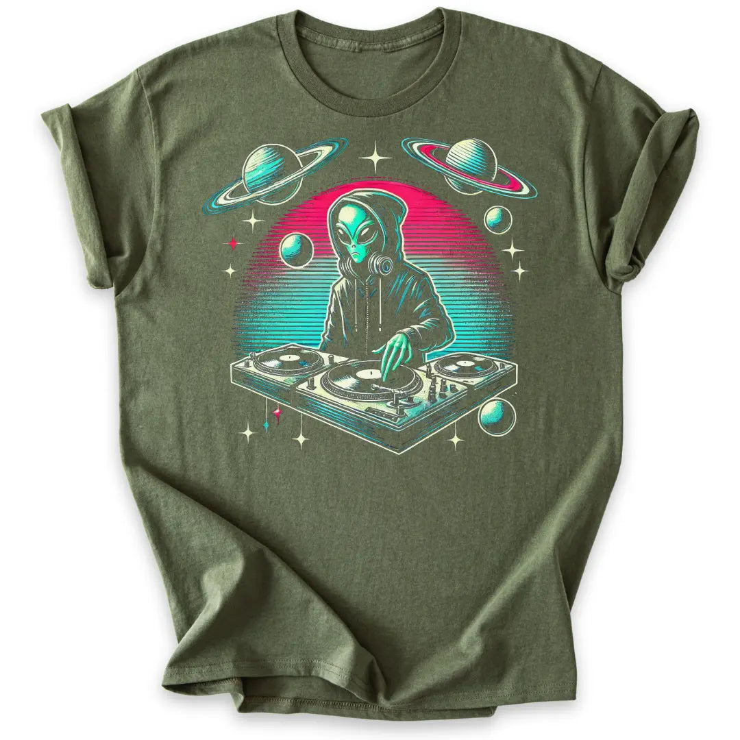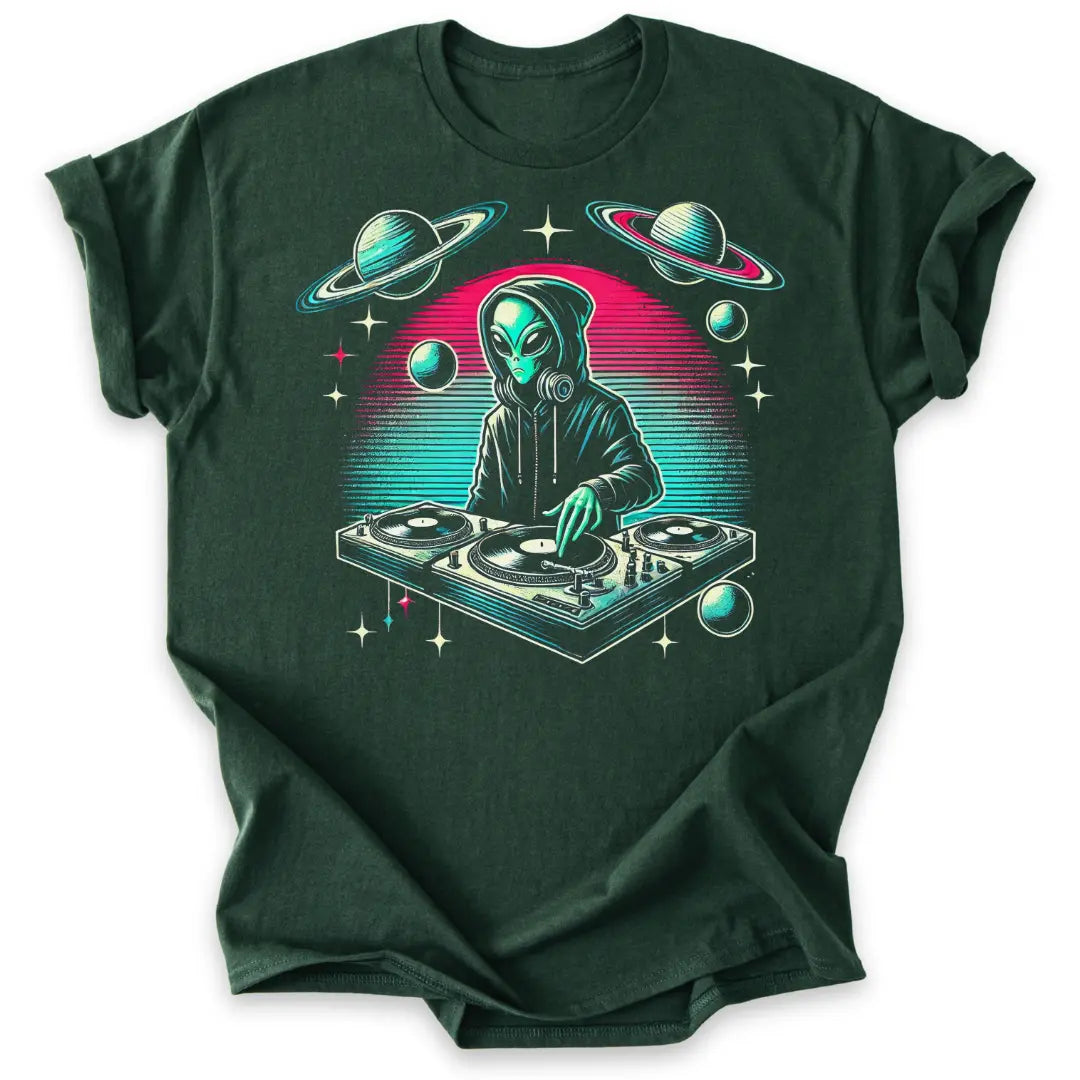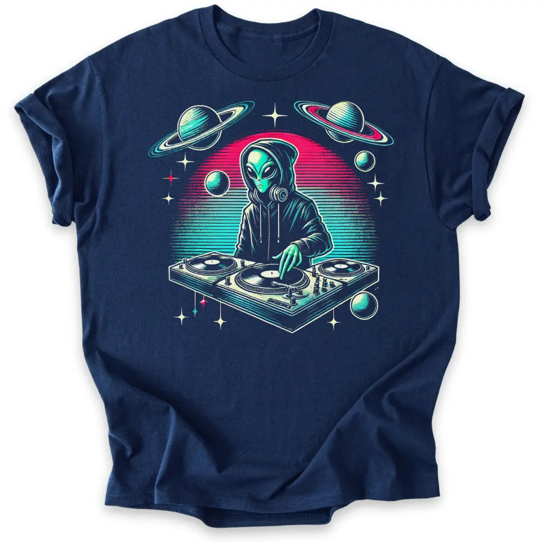 Mit spacigem Design, Turntables und außerirdischem Vibe katapultiert dich dieses T-Shirt direkt in die nächste Galaxie.