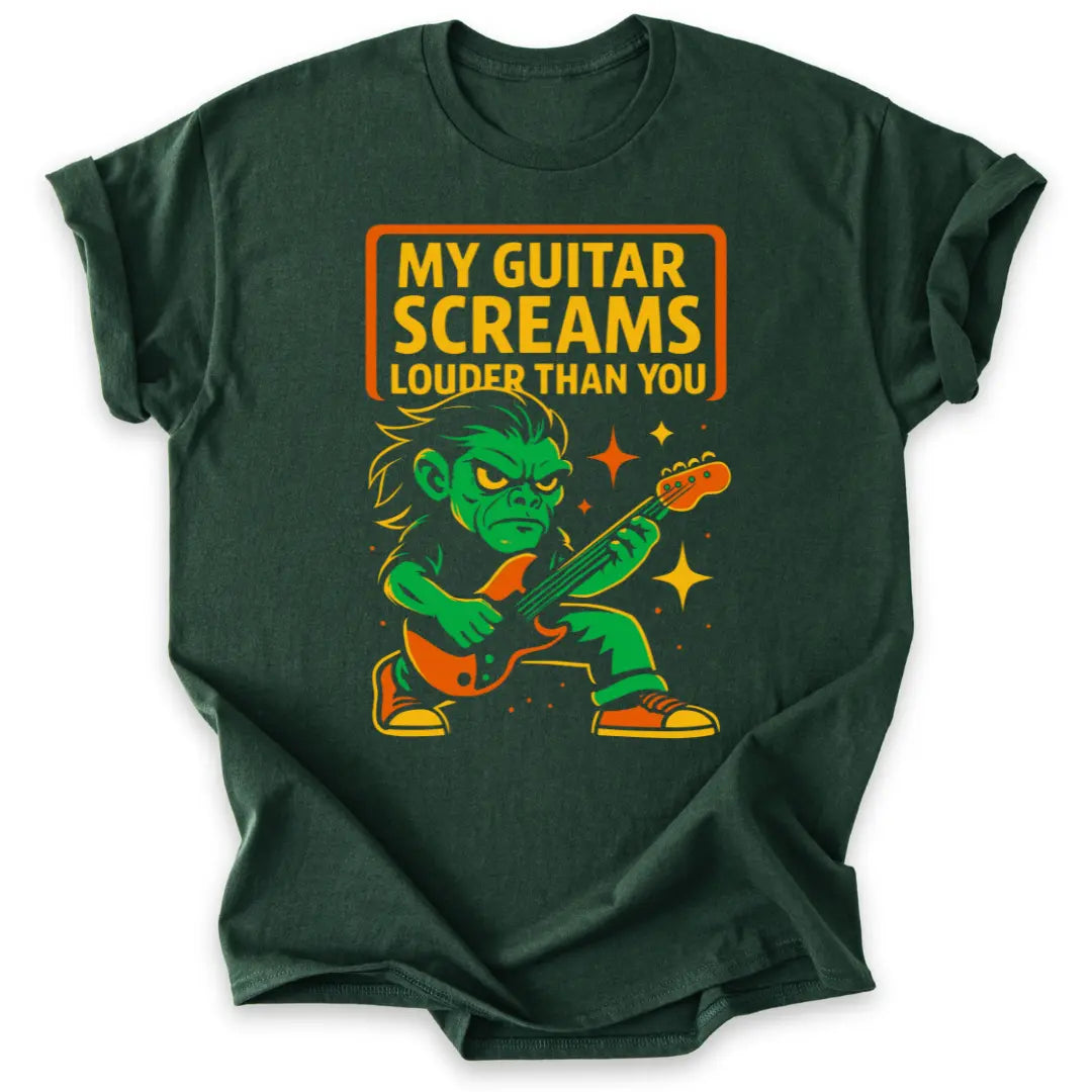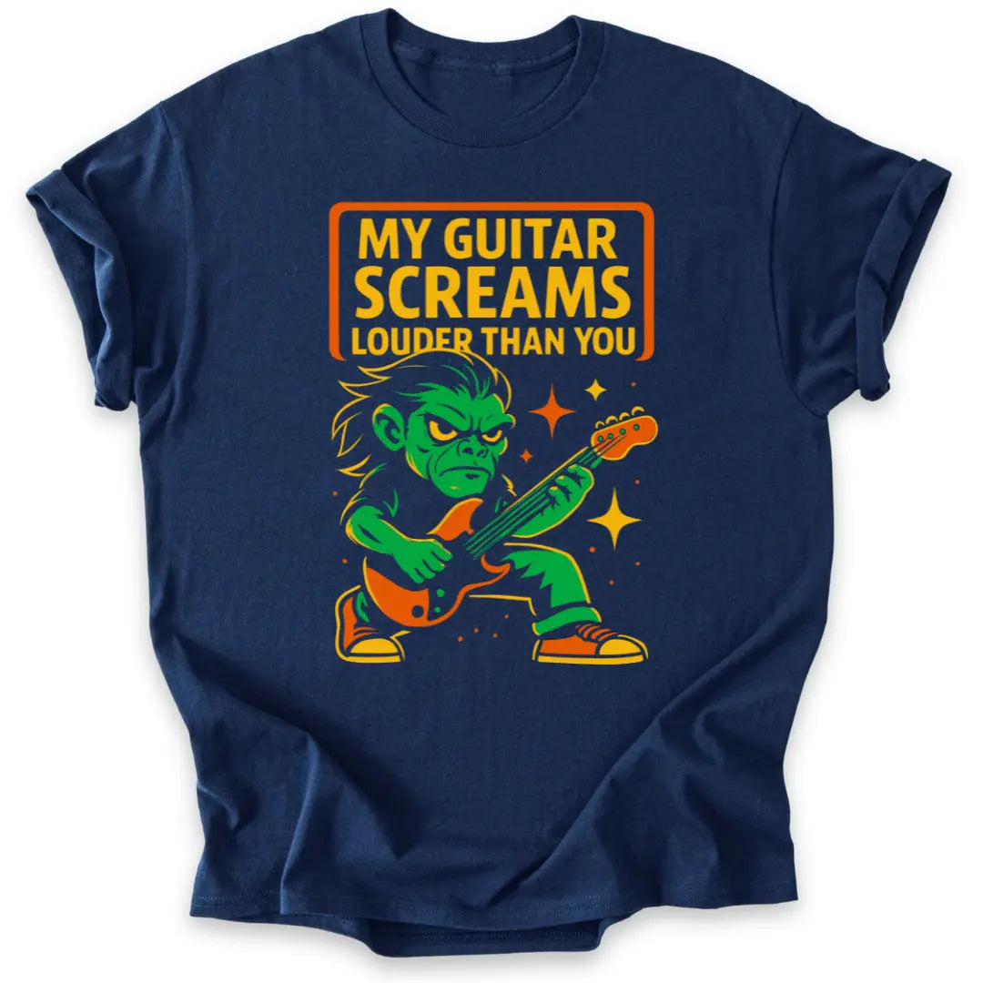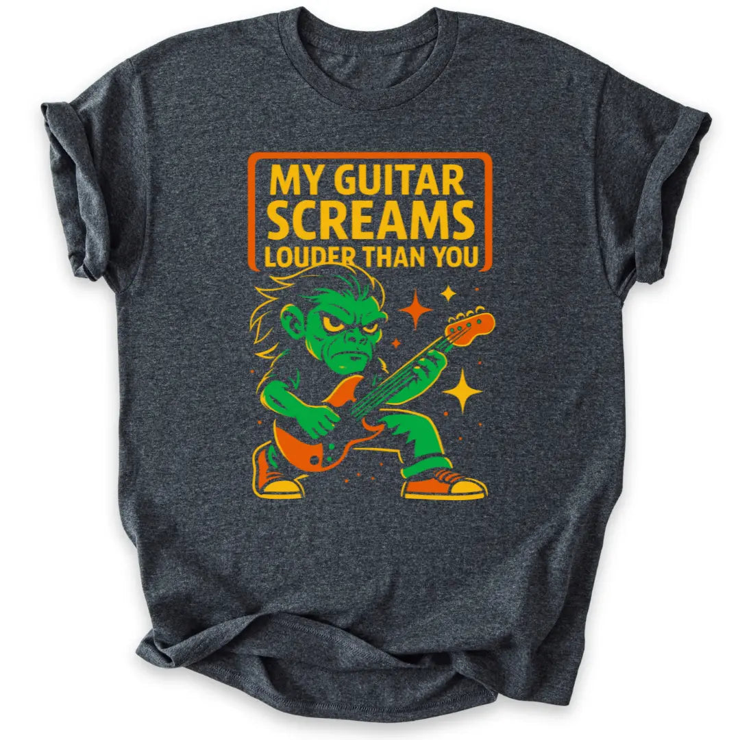 Wenn deine Gitarre brüllt, bleibt kein Platz für Diskussionen – dieses Shirt macht’s klar: Lauter geht immer!