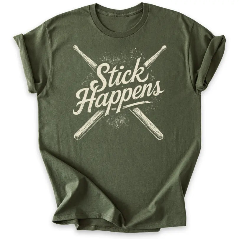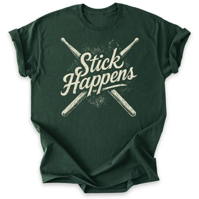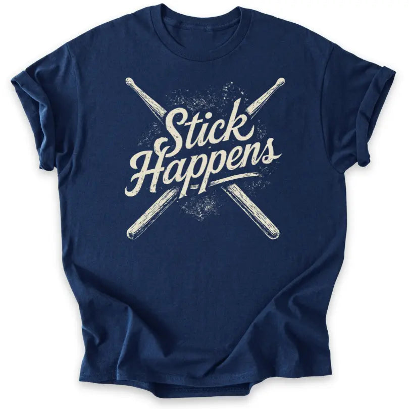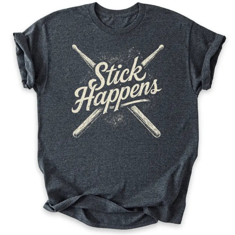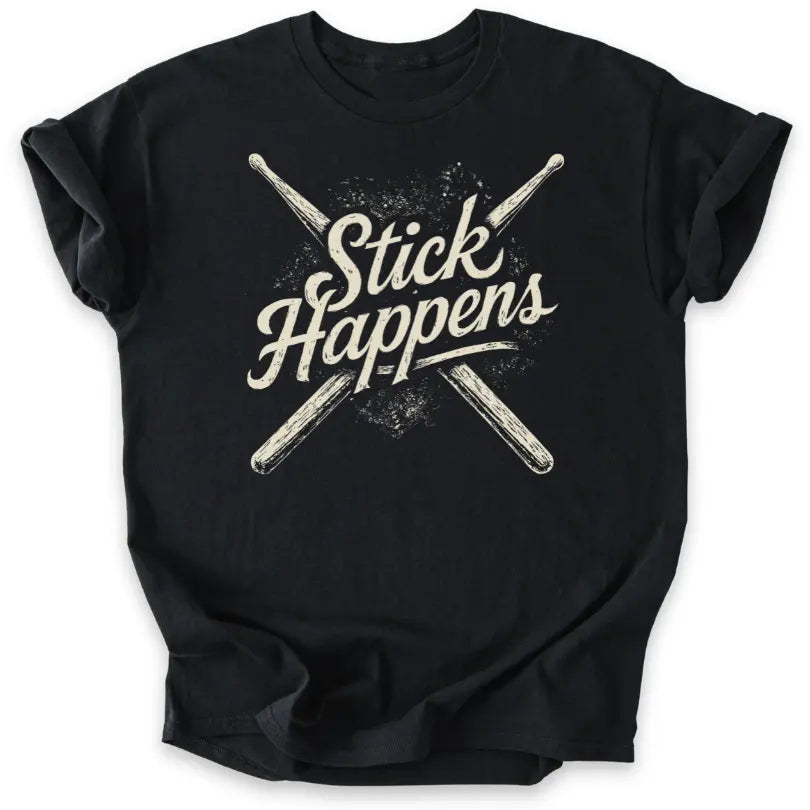 Stick Happens – ein witziges Shirt für alle Drummer:innen, die wissen: Sticks brechen, der Groove bleibt.