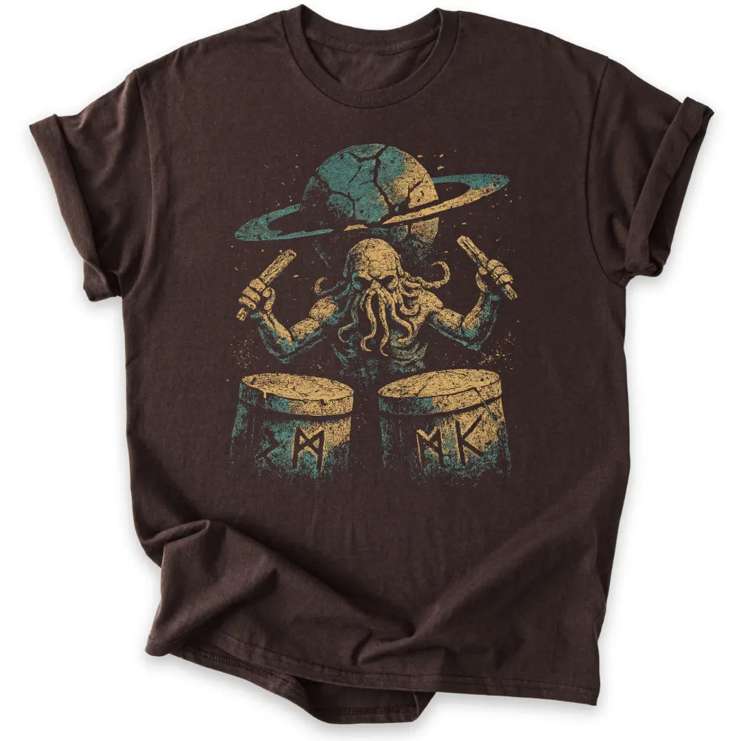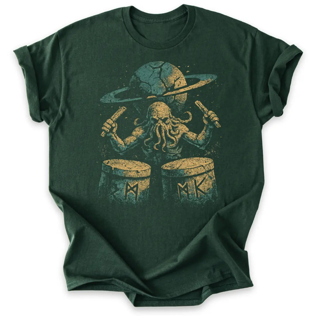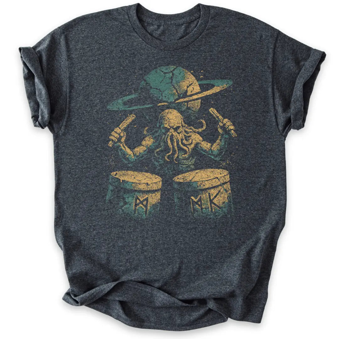 Episch, mystisch und voller Rhythmus – dieses T-Shirt vereint Mythos und Musik in einem kosmischen Design.