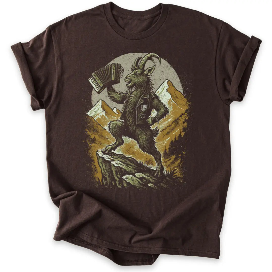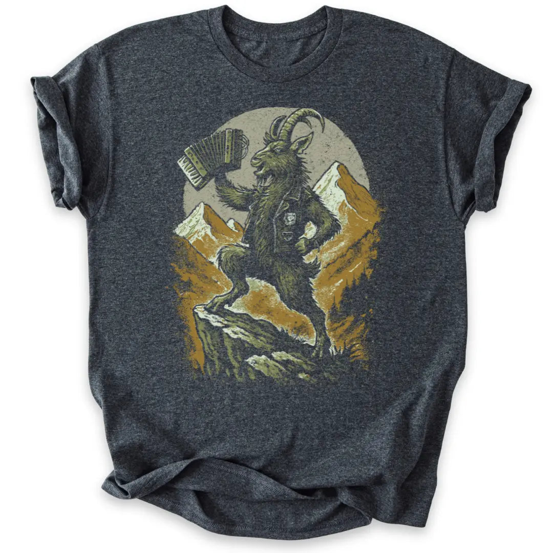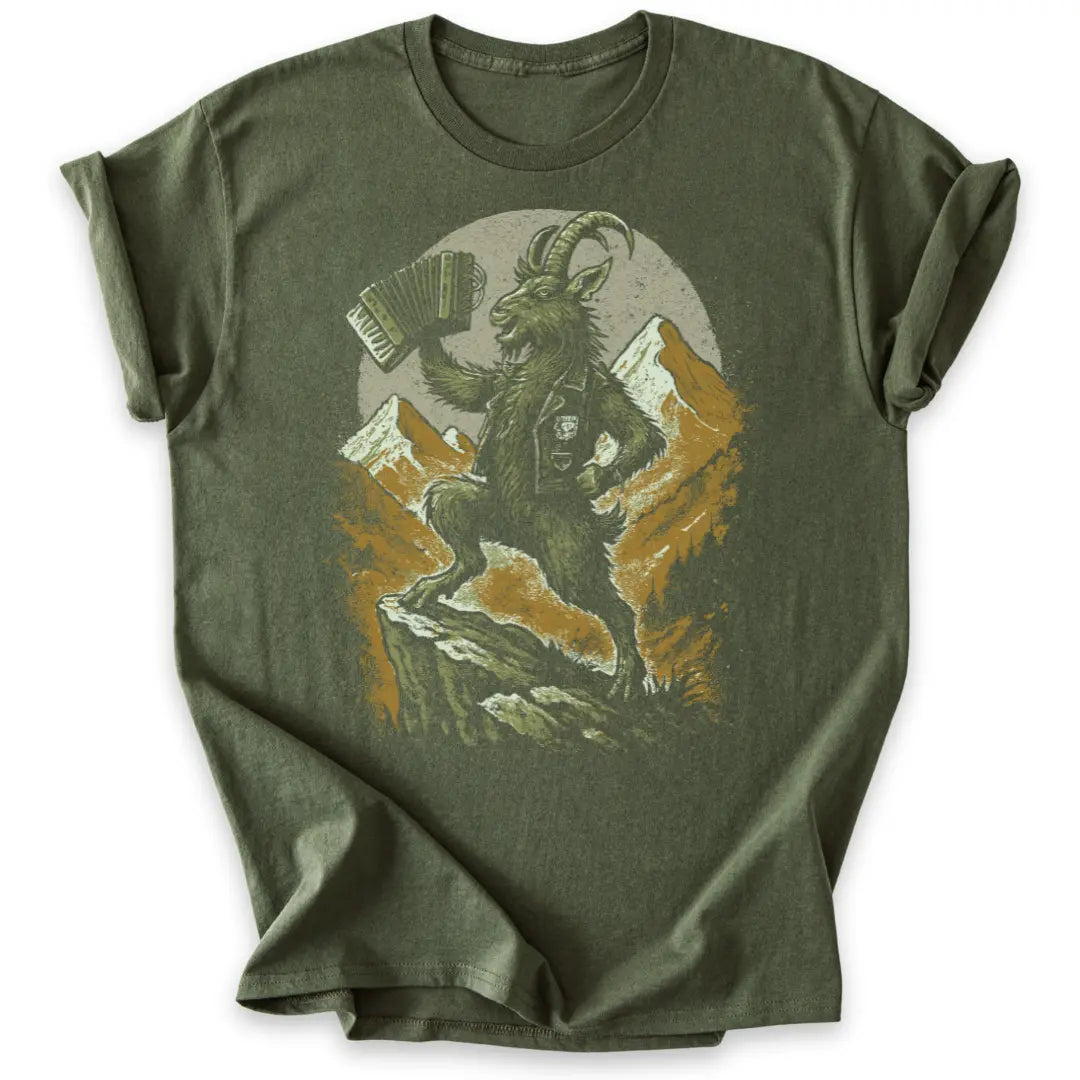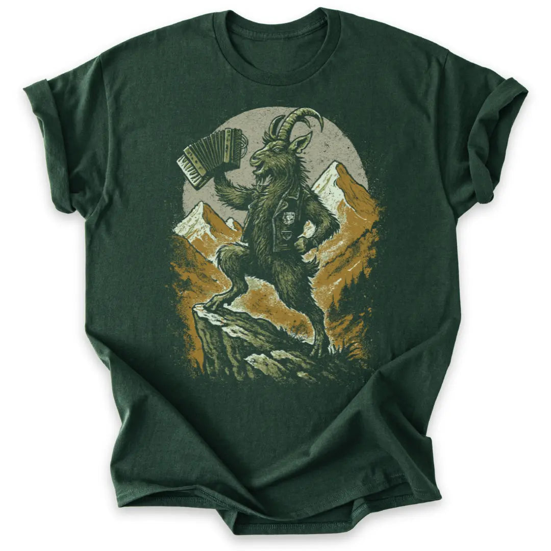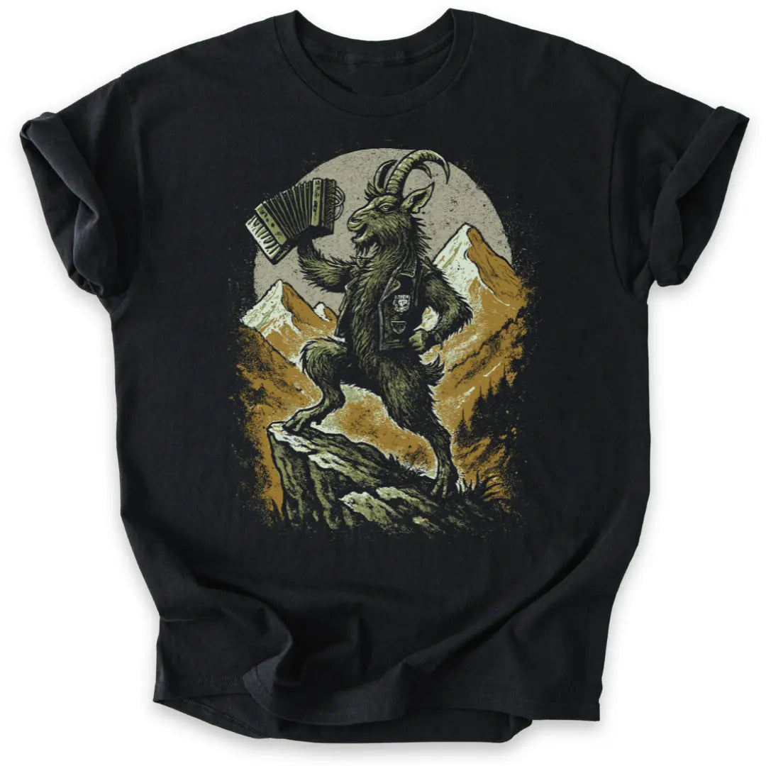 Frech, wild und voller Alpenpower – dieses T-Shirt ist eine Liebeserklärung an Berg und Musik zugleich.
