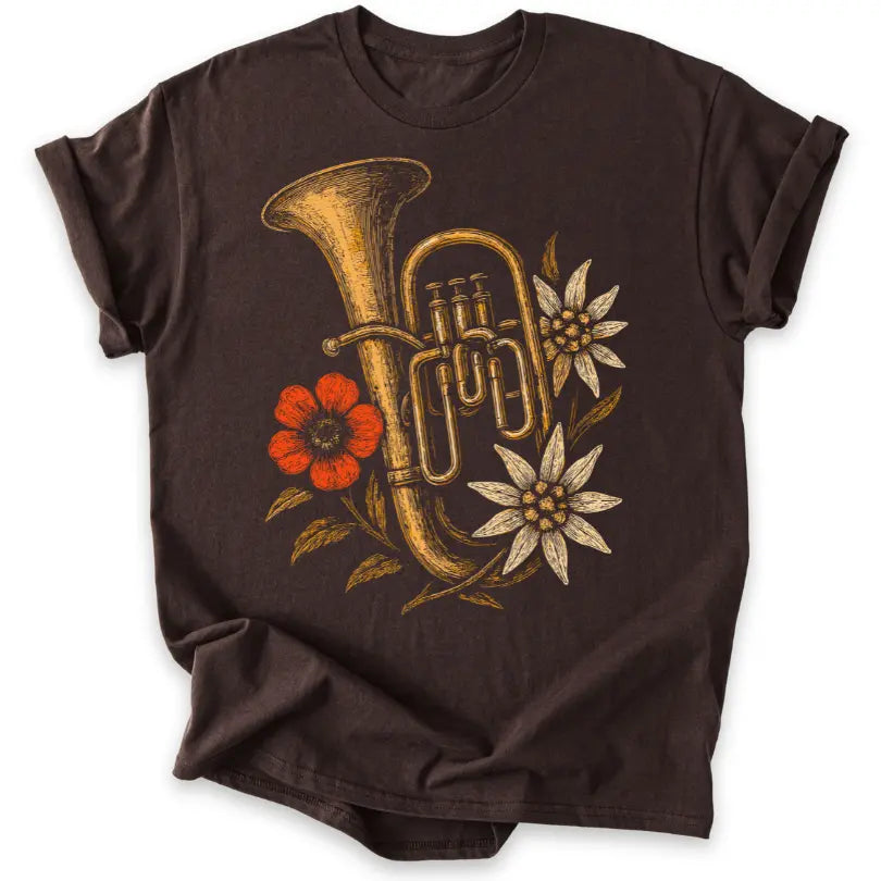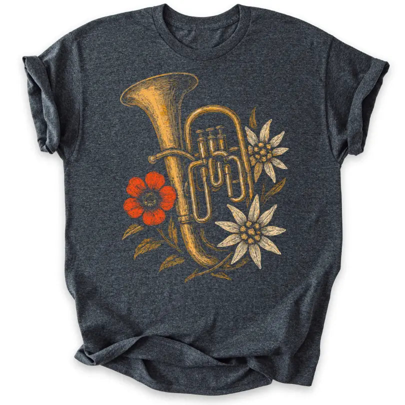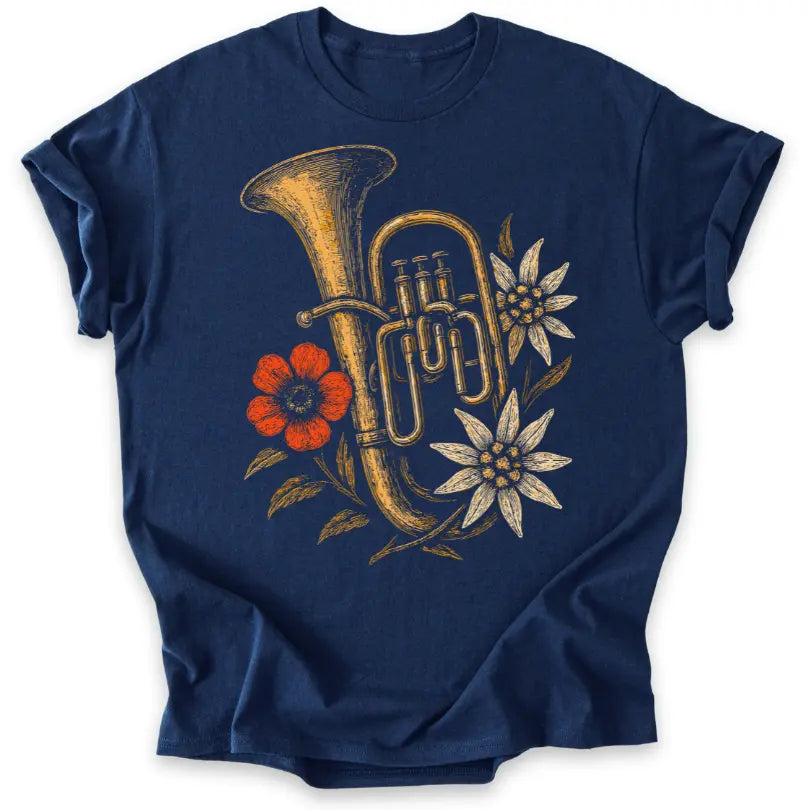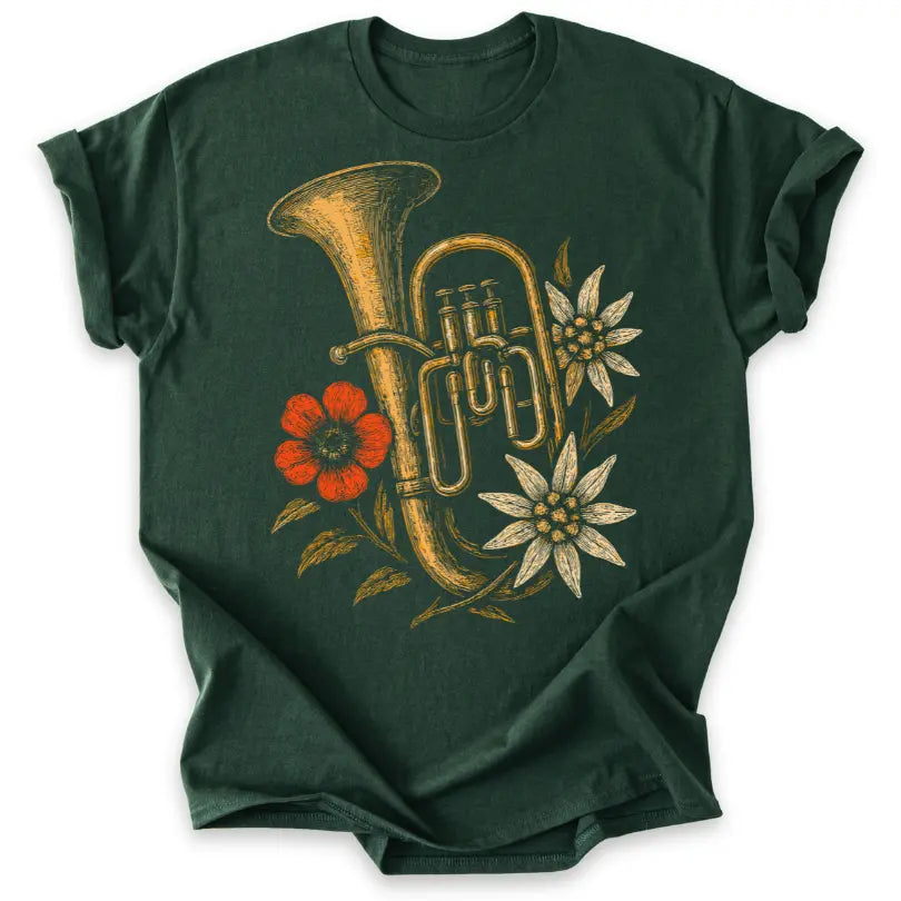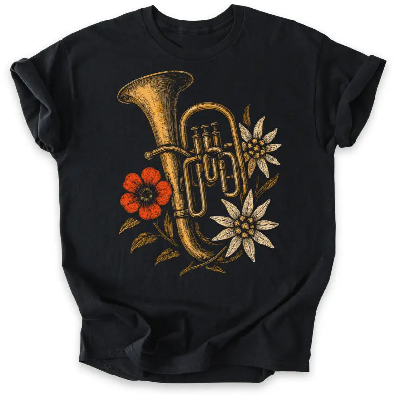 📦 Auch als Geschenk-T-Shirt für Blasmusikant:innen, Flügelhornspieler:innen & Alpenliebhaber:innen ideal.