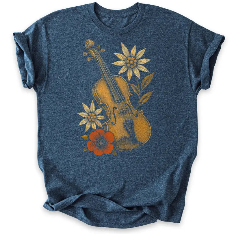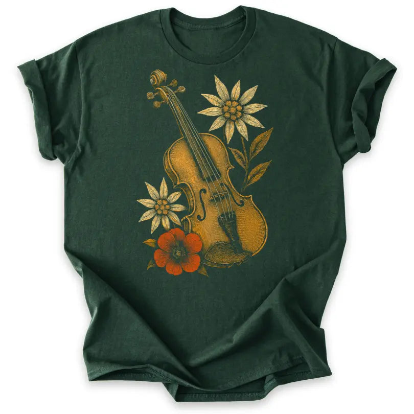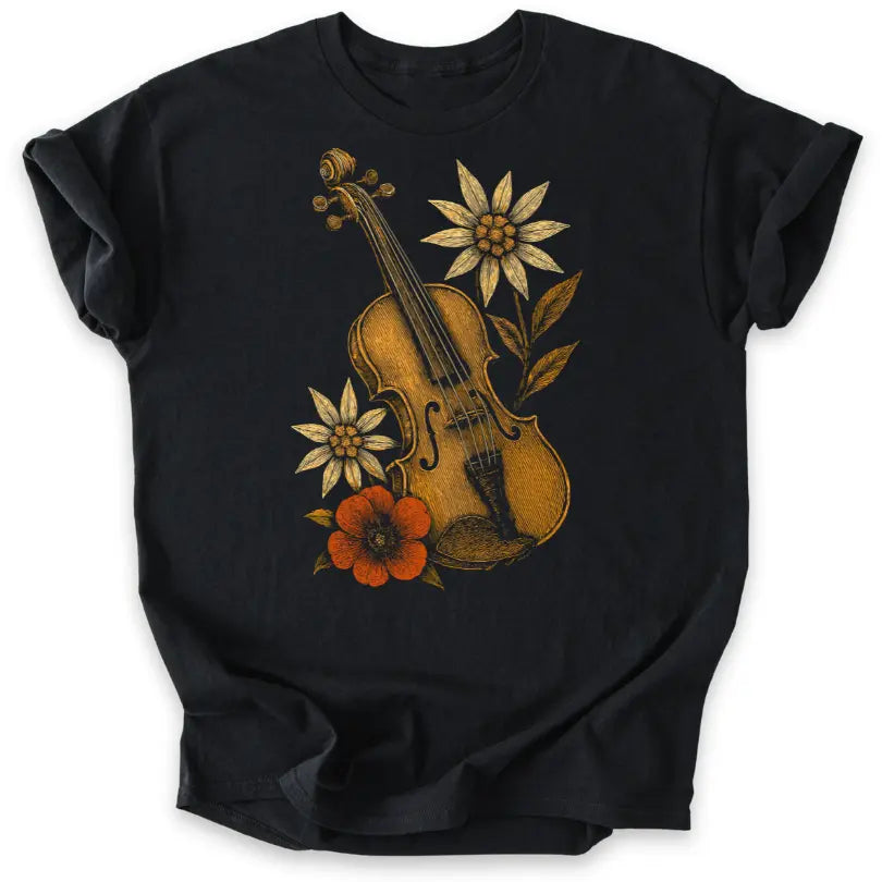 📦 Auch als Geschenk-T-Shirt für Geiger:innen, Volksmusik-Fans & Alpenliebhaber:innen ideal.