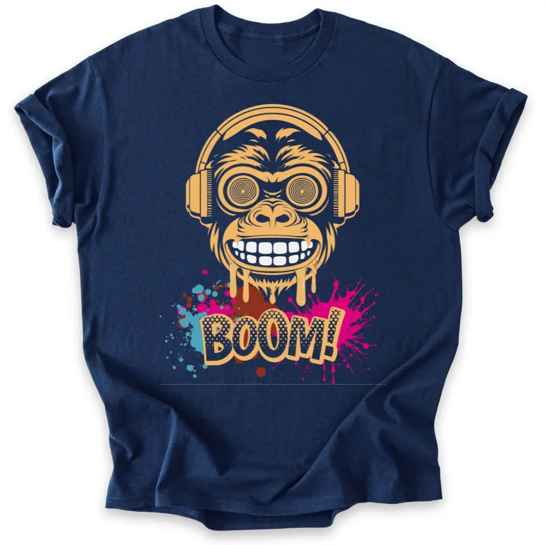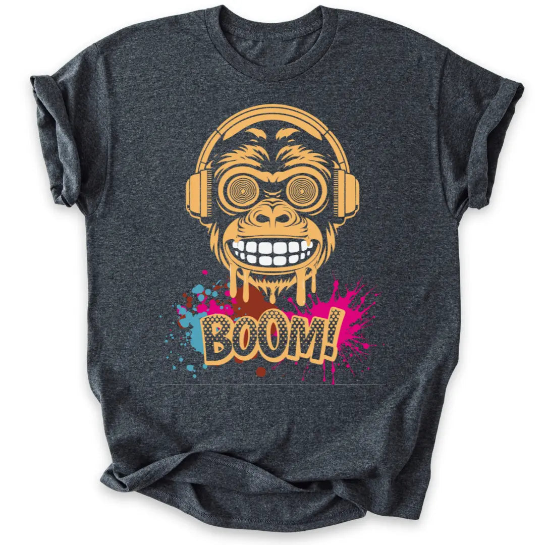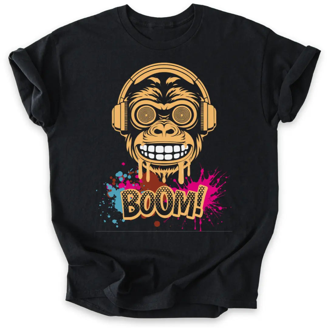 BOOM! – Dieses T-Shirt ist der Bass in Textilform. Der durchgeknallte Affe mit Headphones und Hypno-Blick bringt genau die Energie, die du hinter den Decks brauchst.