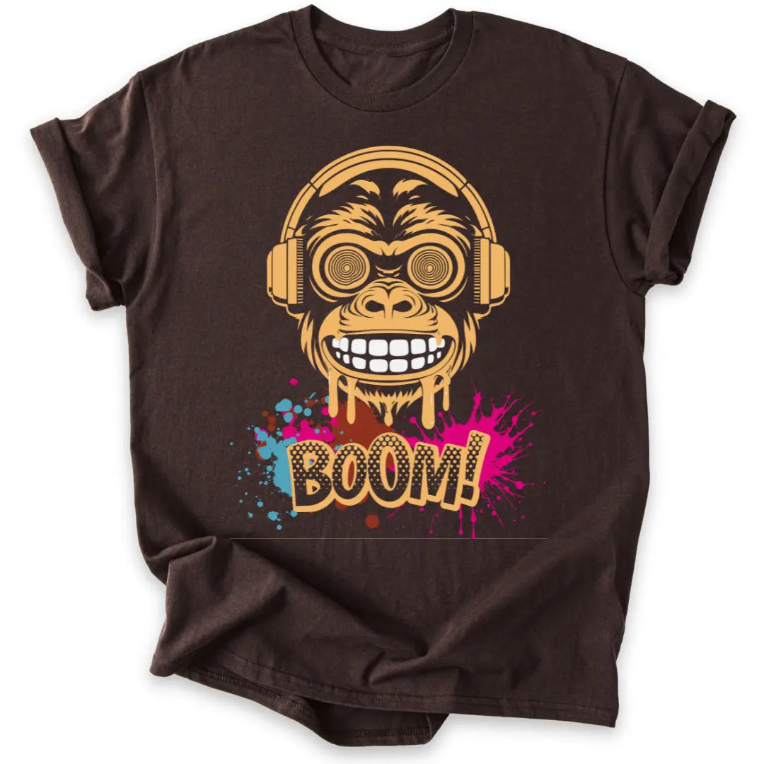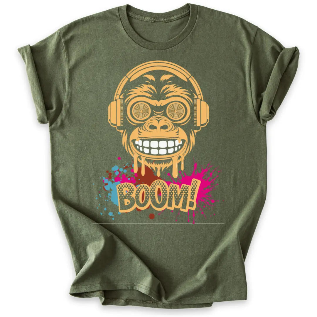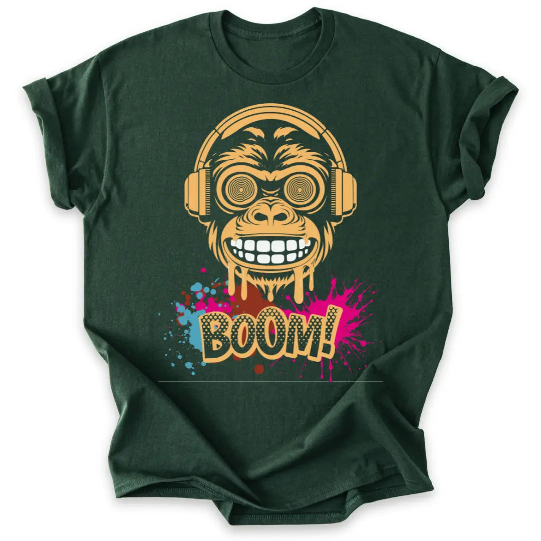 BOOM! – Dieses T-Shirt ist der Bass in Textilform. Der durchgeknallte Affe mit Headphones und Hypno-Blick bringt genau die Energie, die du hinter den Decks brauchst.