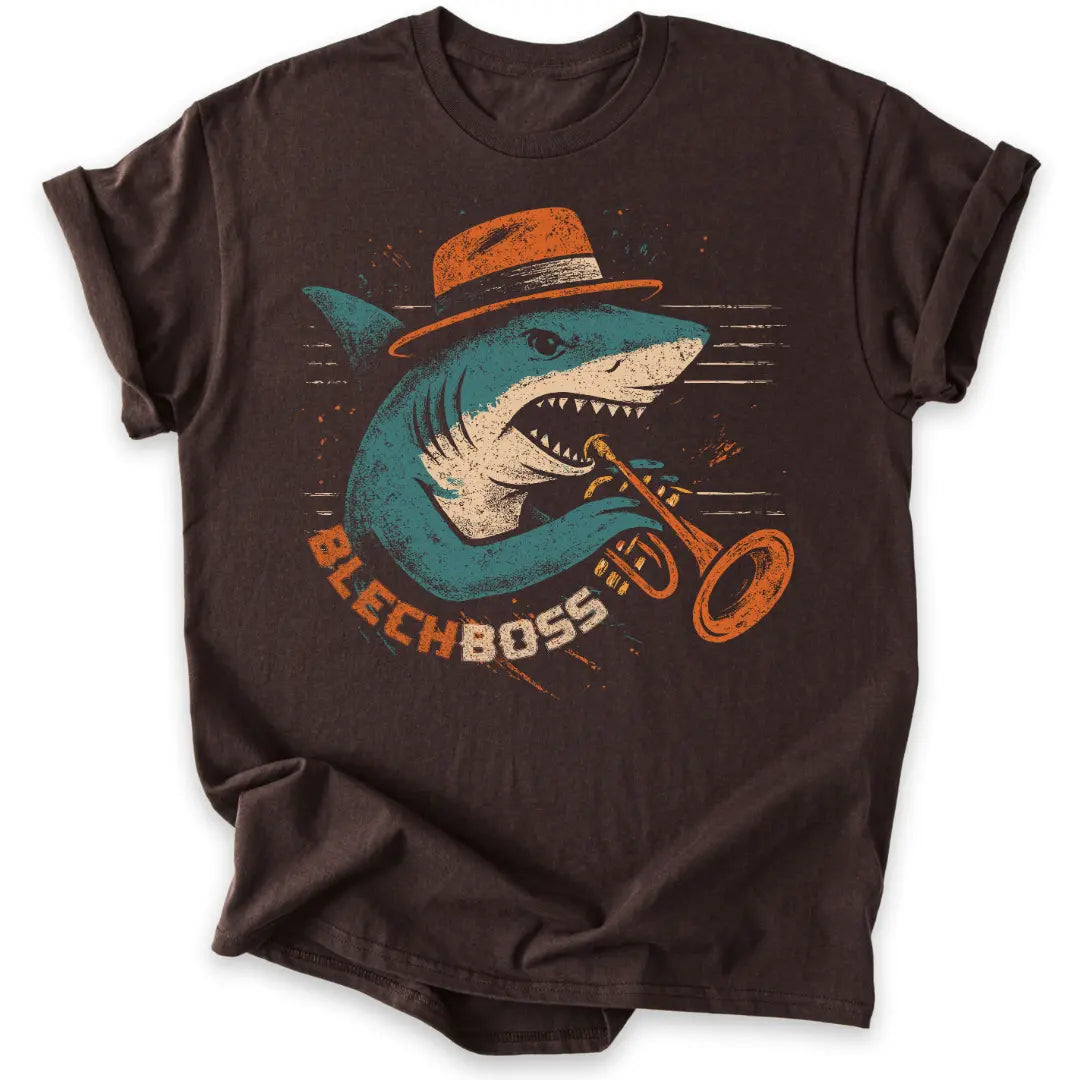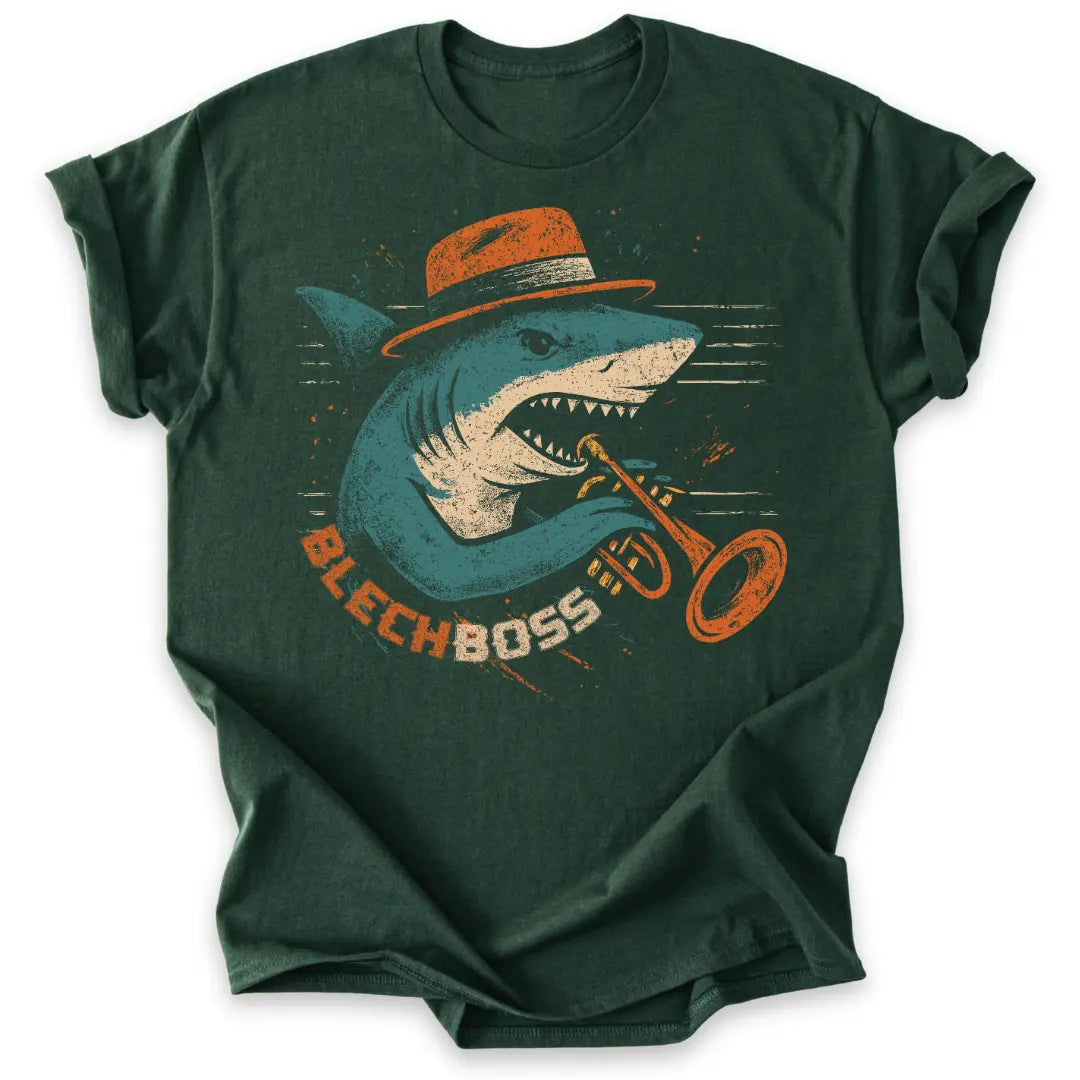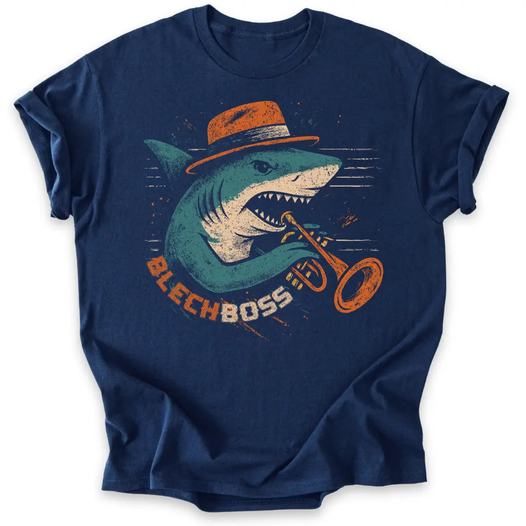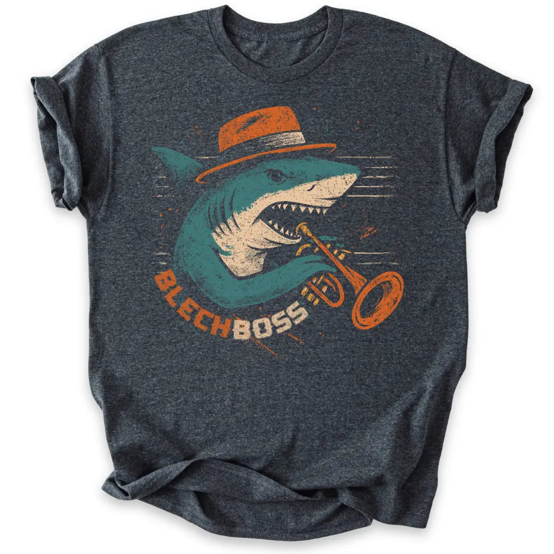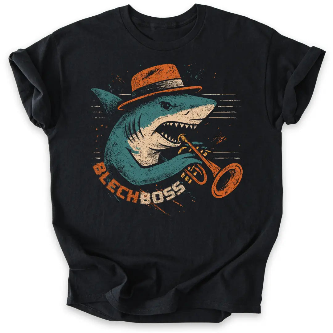 Mit Trompeten-Hai im Retro-Look und Blechboss-Schriftzug für alle, die Brass und Big Band Sound lieben.