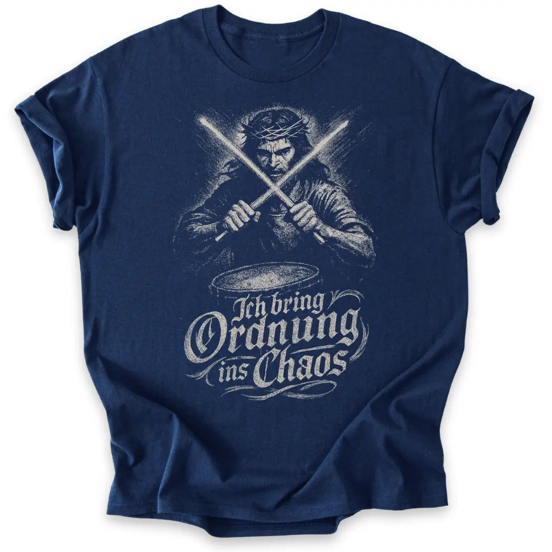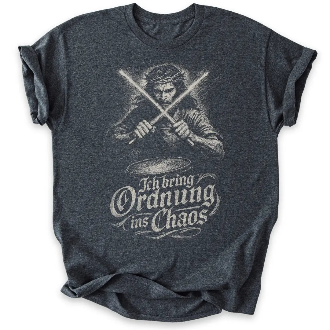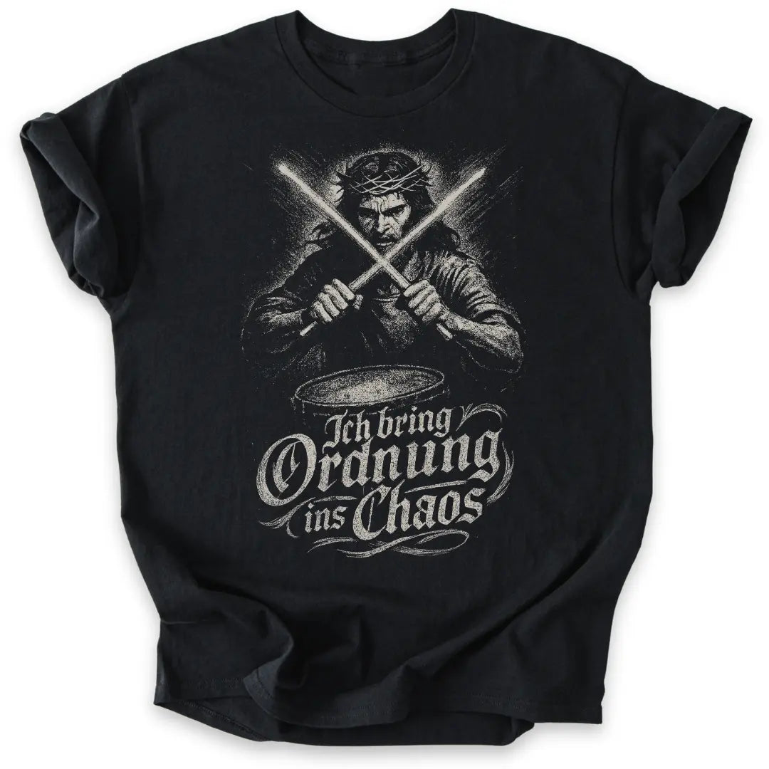 Kraftvoll, düster und voller Bedeutung – dieses T-Shirt bringt den Kontrast von Ordnung und Chaos auf die Bühne.