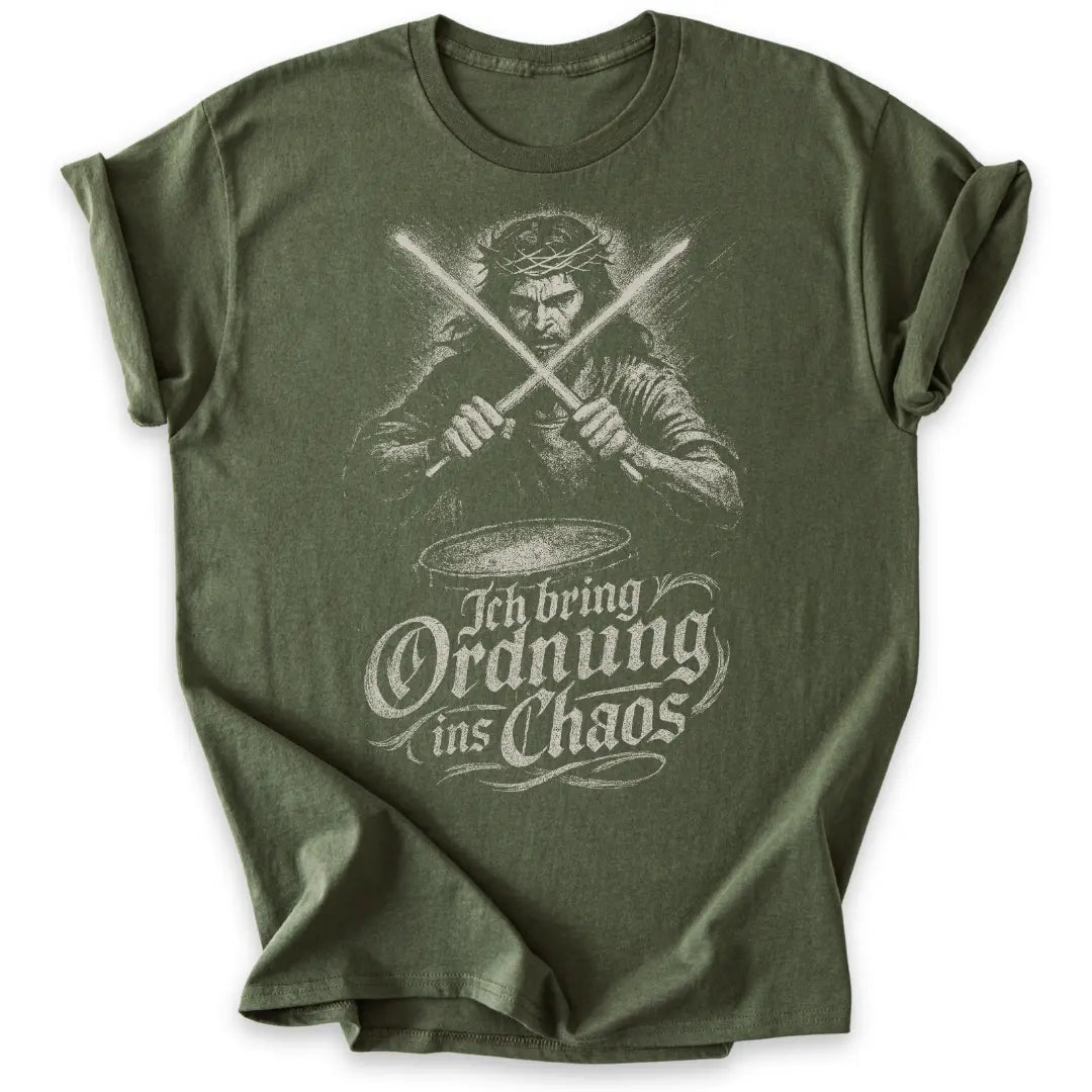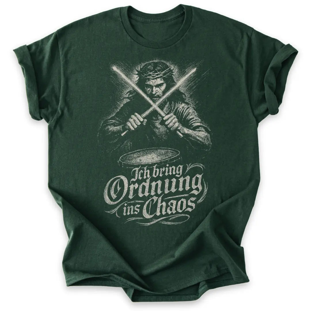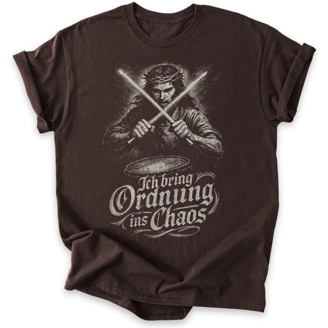 Kraftvoll, düster und voller Bedeutung – dieses T-Shirt bringt den Kontrast von Ordnung und Chaos auf die Bühne.