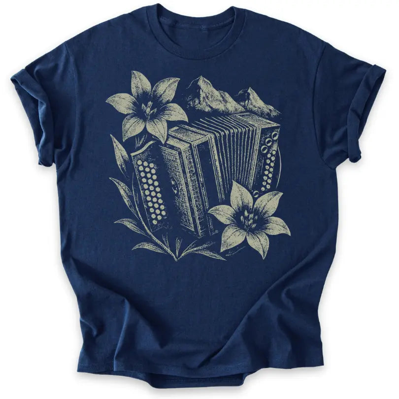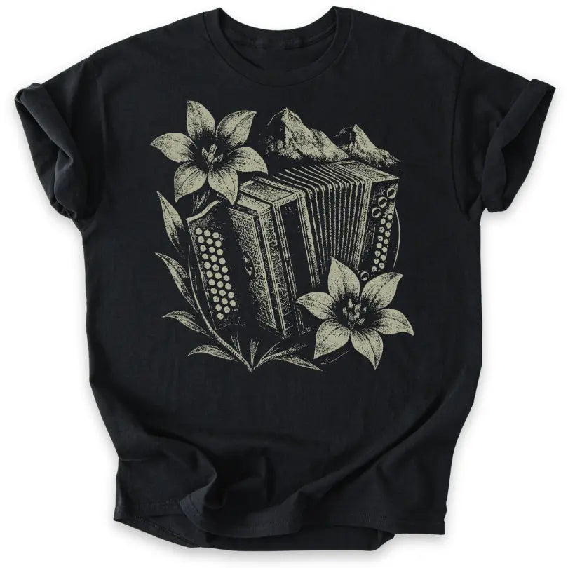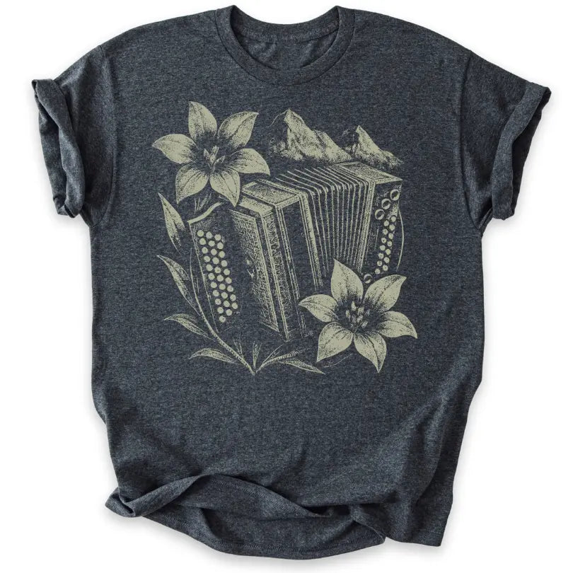 📦 Auch als Geschenk-T-Shirt für Harmonika-Spieler:innen, Volksmusik-Fans & Alpenliebhaber:innen ideal.