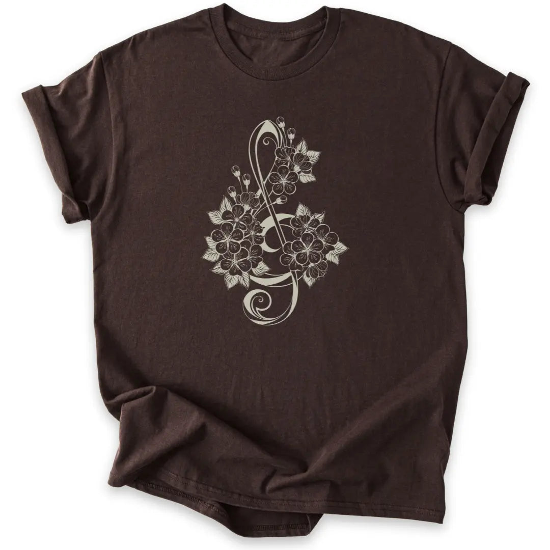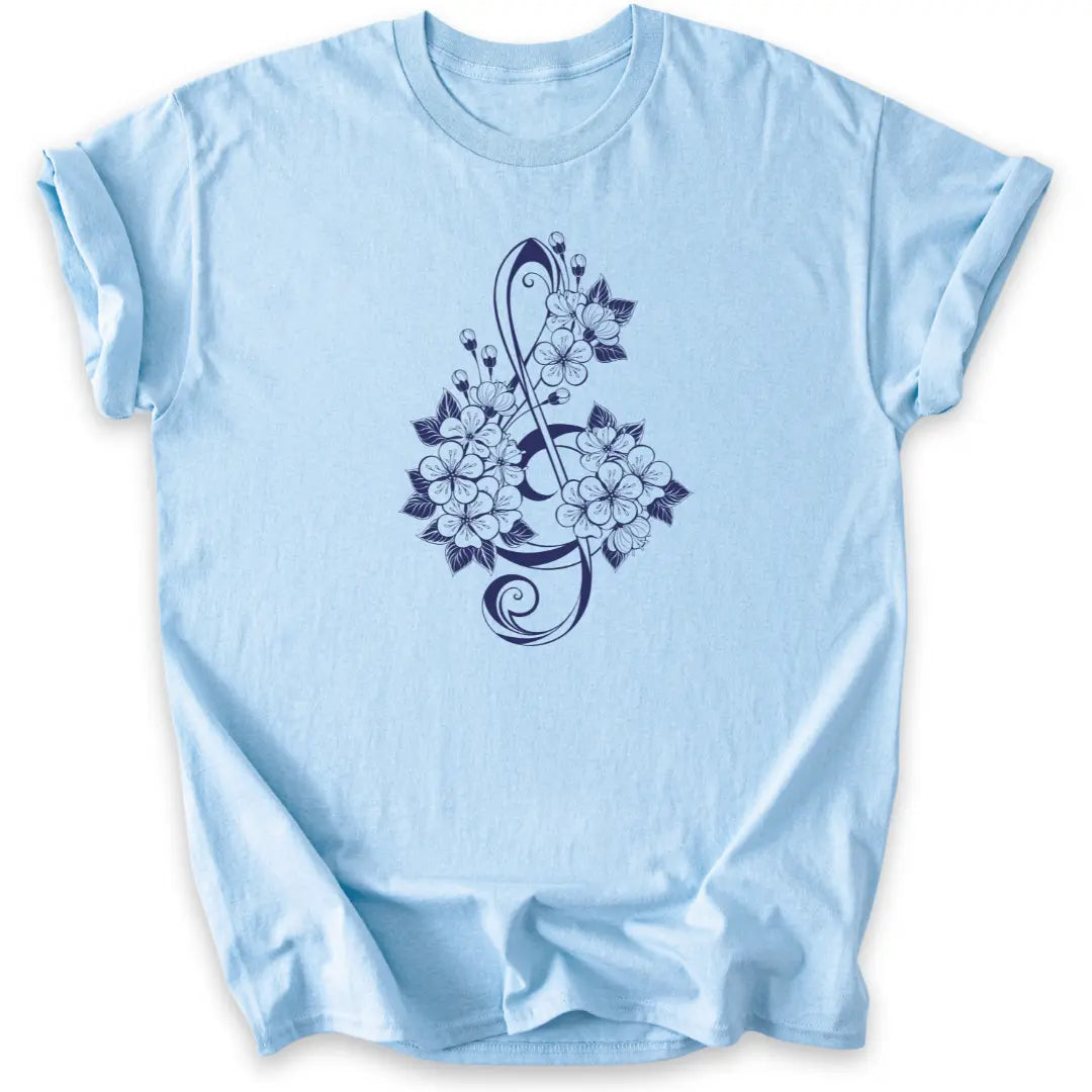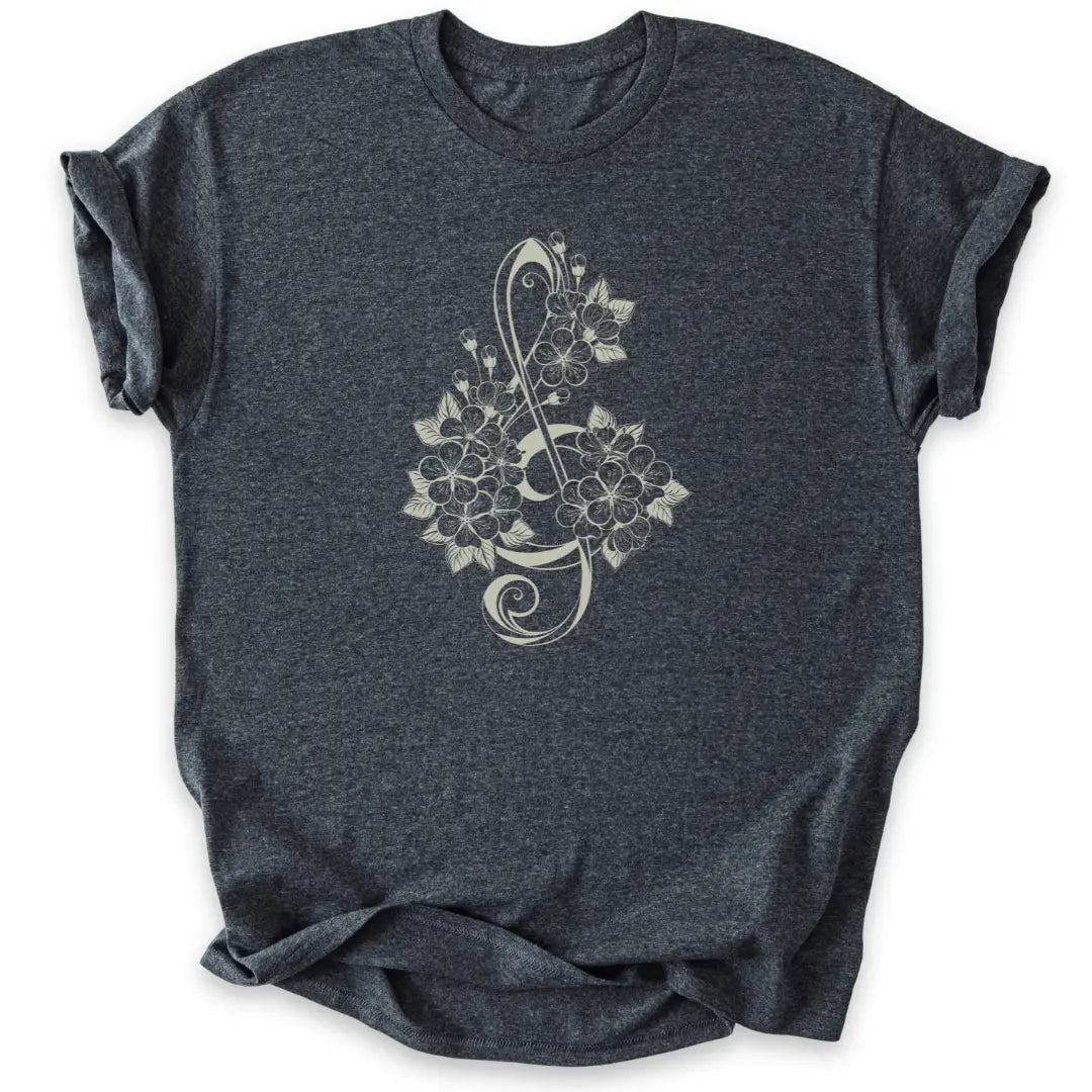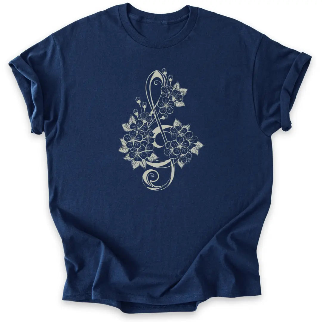 Musik trifft Natur: Dieses T-Shirt verbindet zarte Blüten mit stilvollem Notenschlüssel.