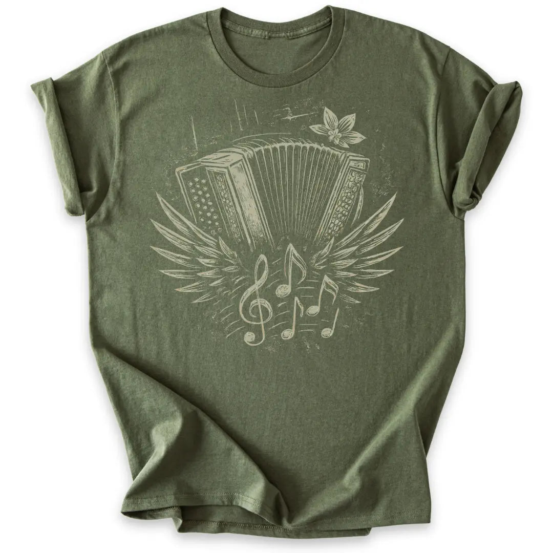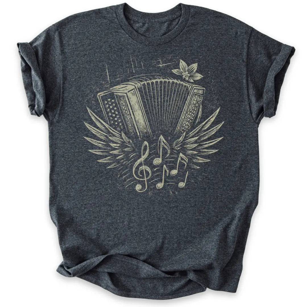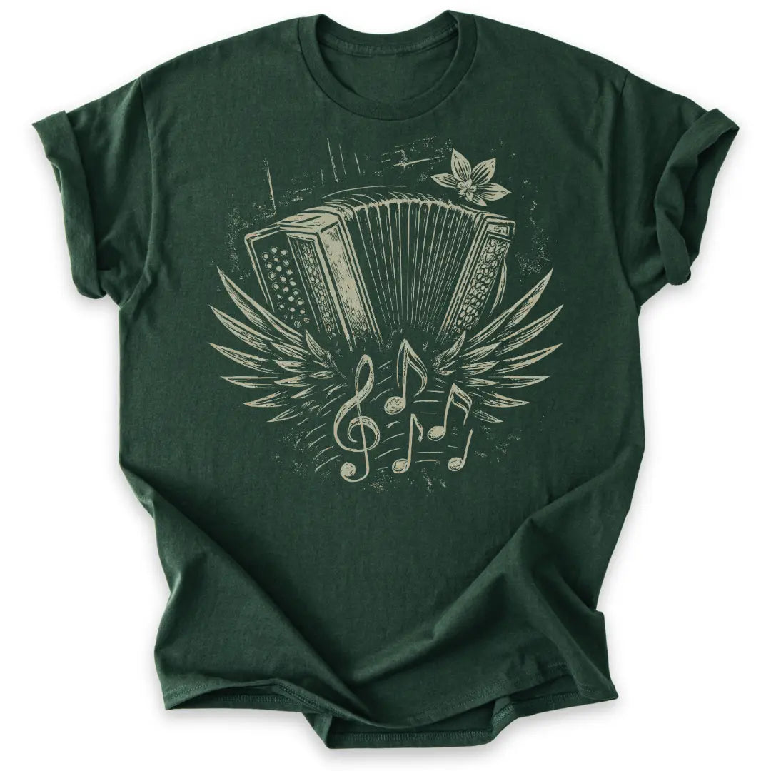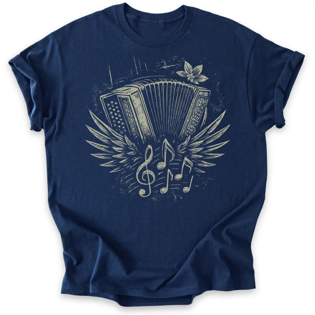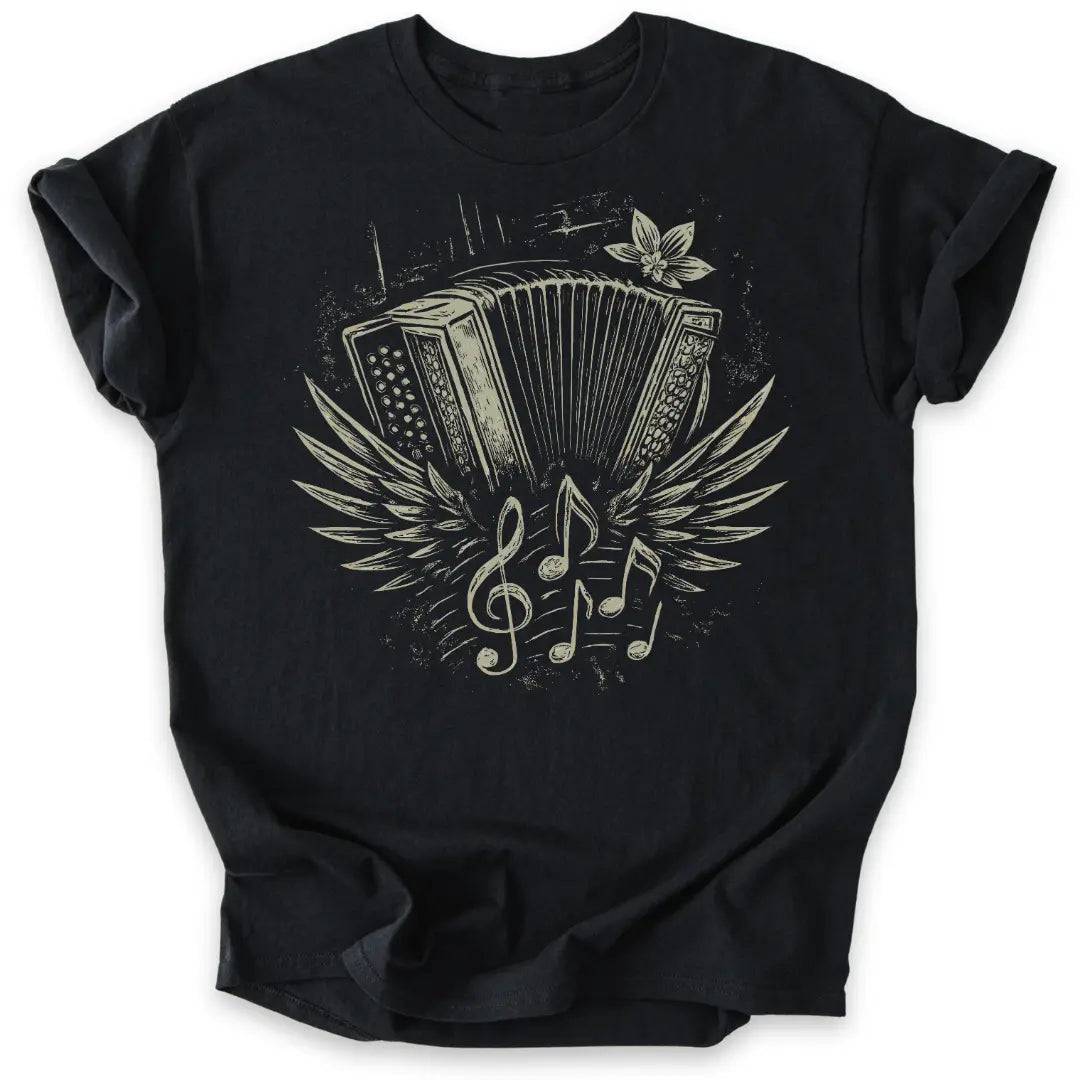 Musik trägt, berührt und verbindet – dieses T-Shirt ist eine Hommage an die Ziehharmonika und ihre fliegenden Töne.
