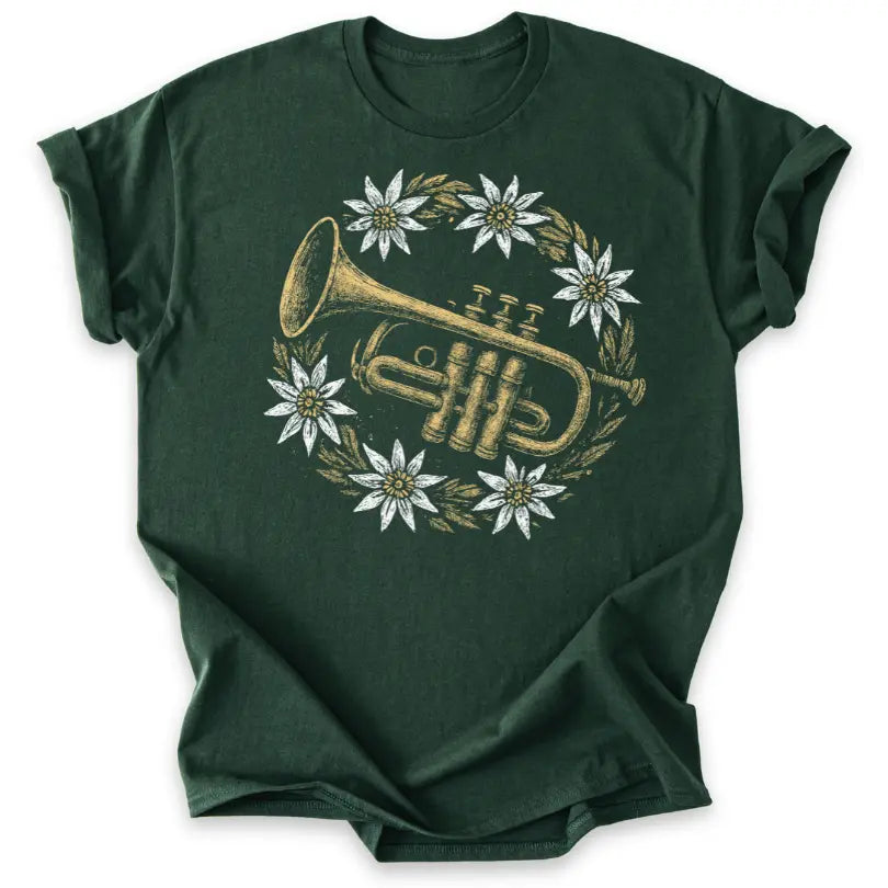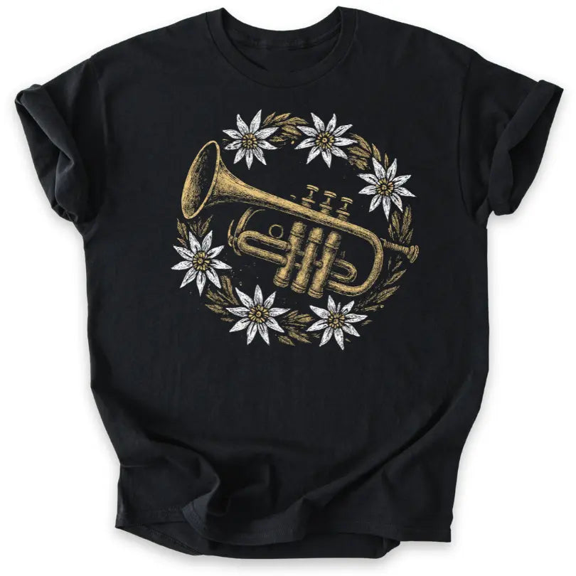 📦 Auch als Geschenk-T-Shirt für Trompeter:innen, Blasmusik-Fans & Alpenliebhaber:innen ideal.