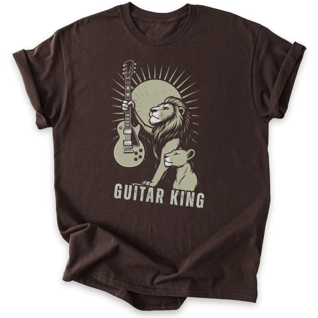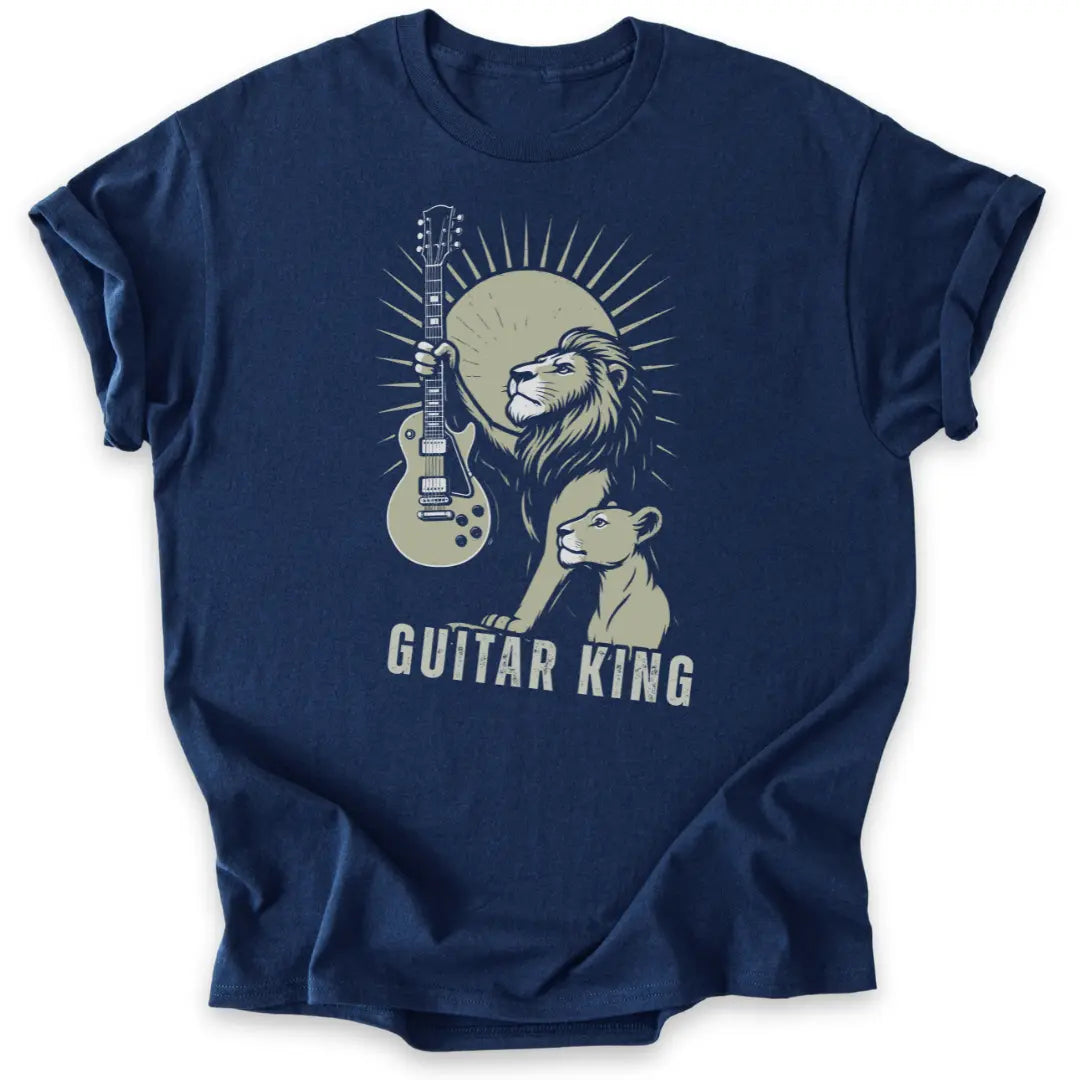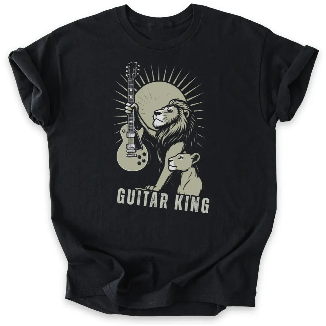 📦 Auch als Geschenk-T-Shirt für Gitarrist:innen, Rockfans & Löwenseelen ideal.