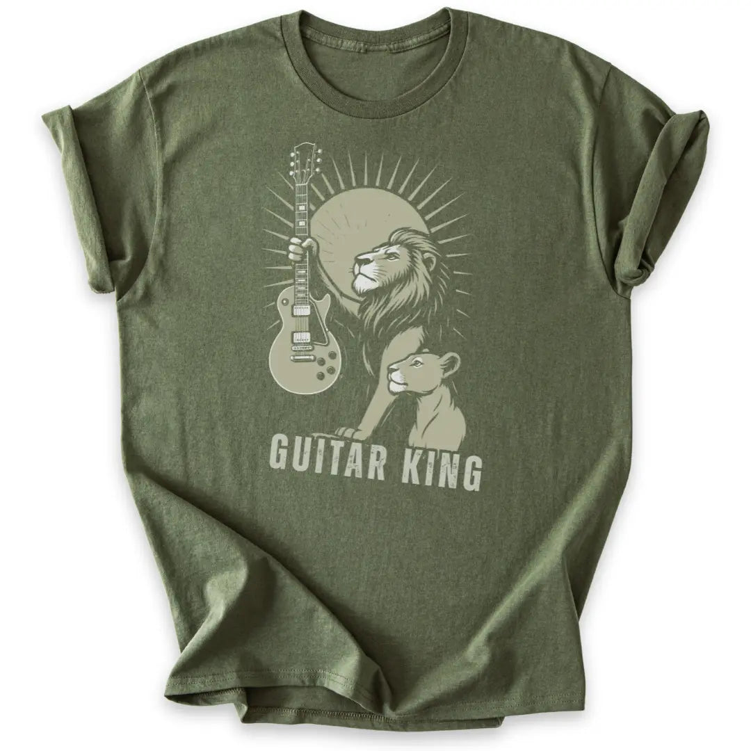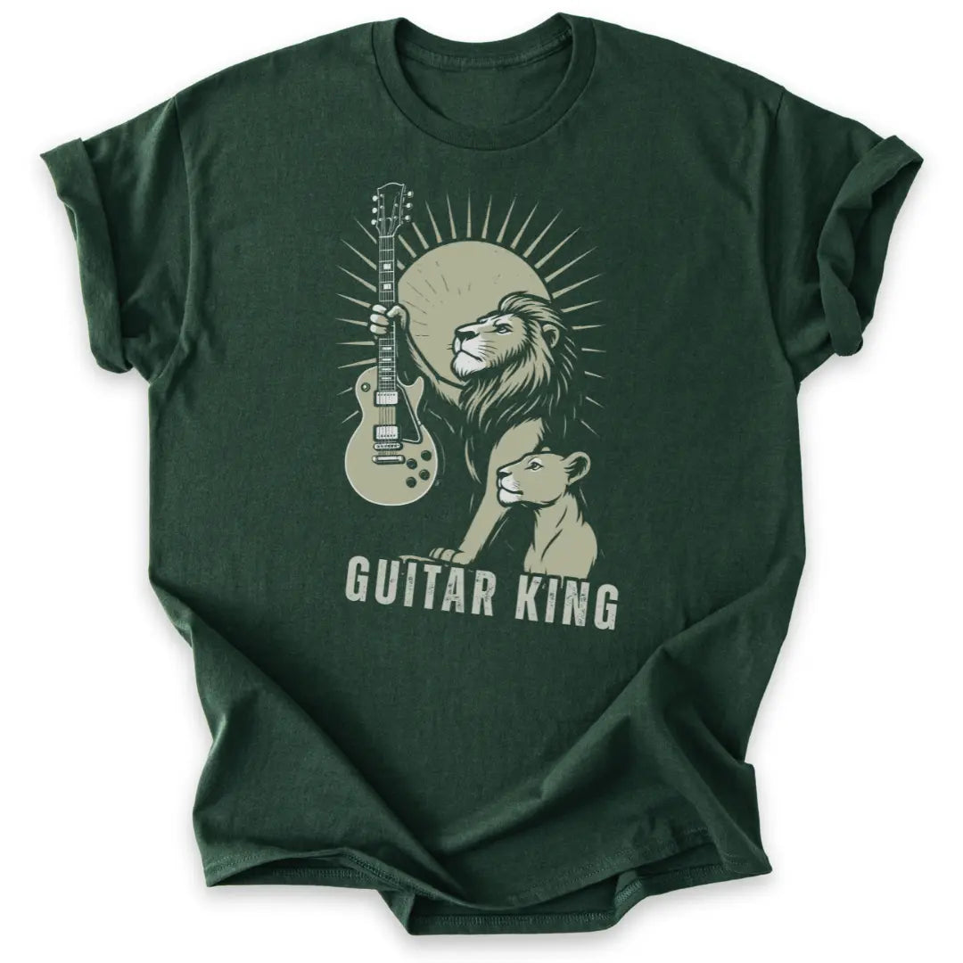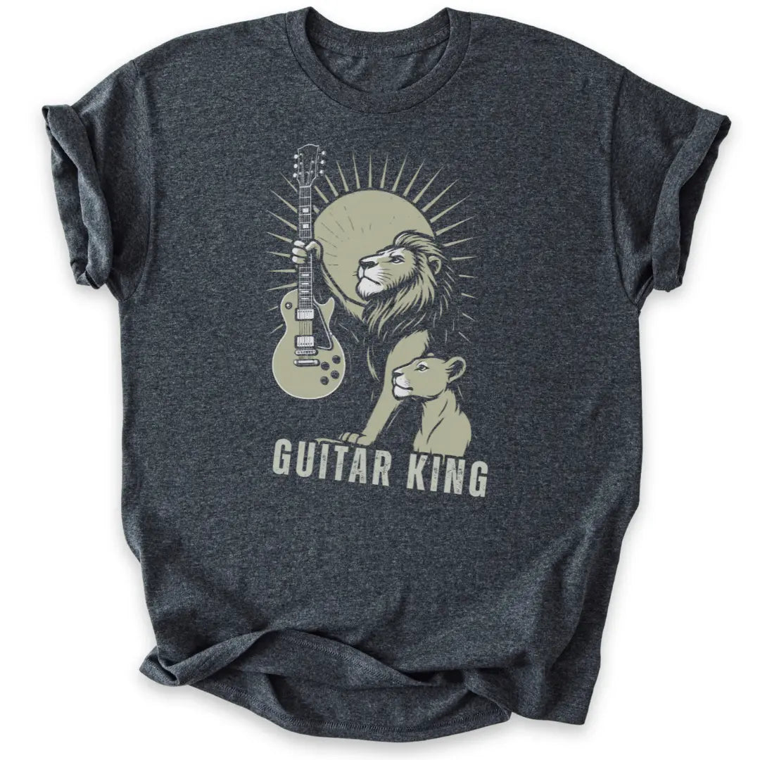 📦 Auch als Geschenk-T-Shirt für Gitarrist:innen, Rockfans & Löwenseelen ideal.