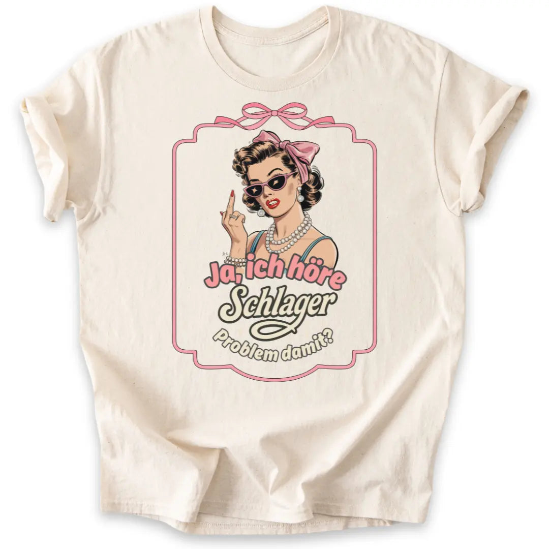 T-Shirt für Schlagerfans mit Stil. Retro-Design, Statement-Spruch und garantiert nicht ironisch.