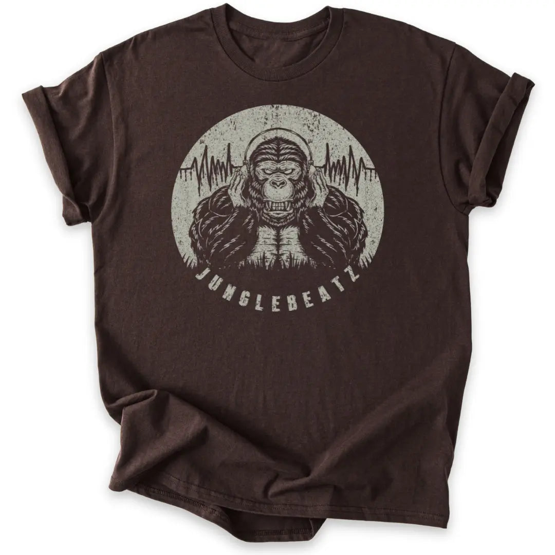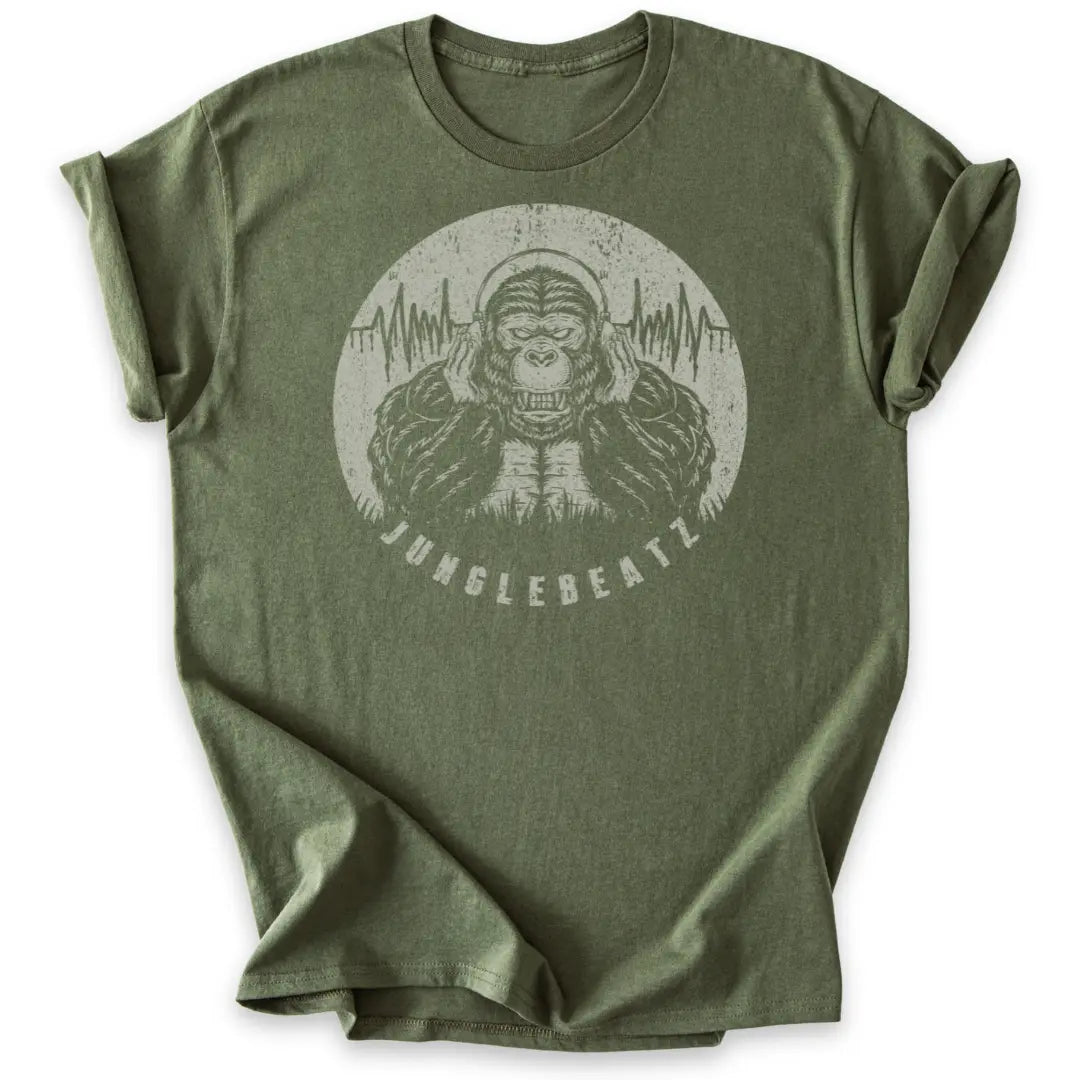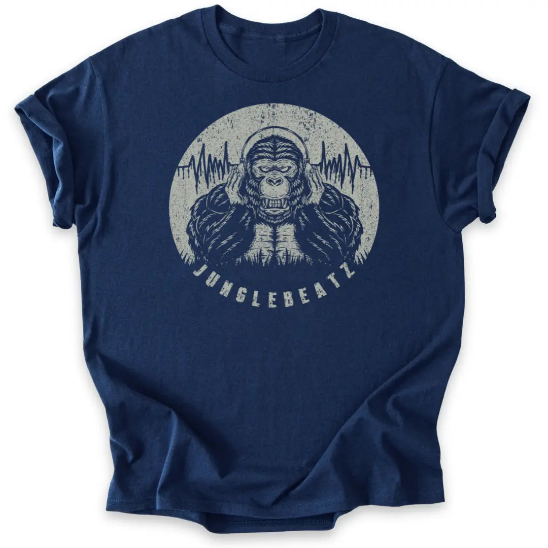 Dieses T-Shirt mit markantem Gorilla-Motiv und Soundwave-Design bringt deine Liebe zu fetten Rhythmen und animalischer Energie auf den Punkt.