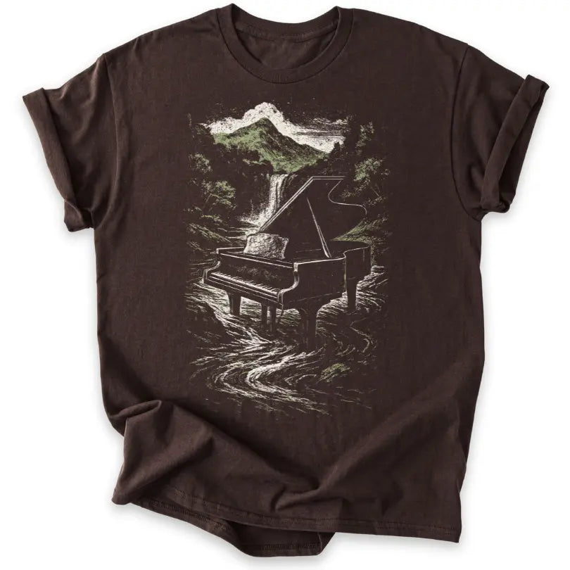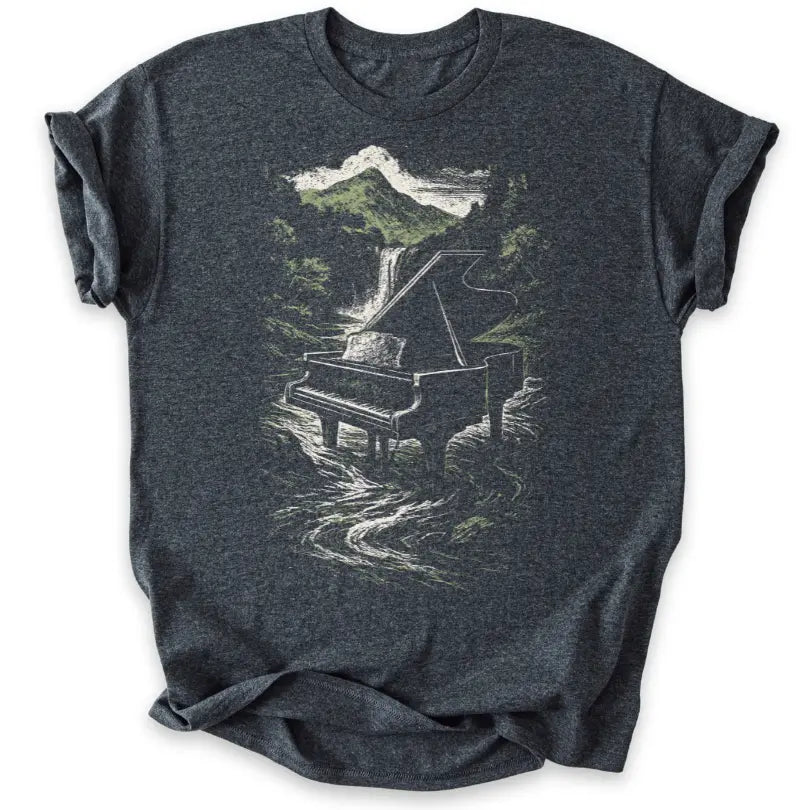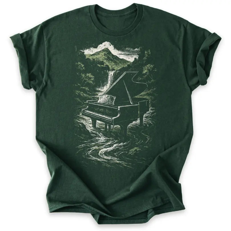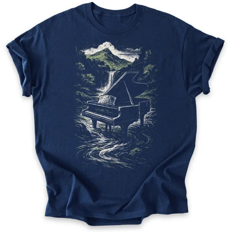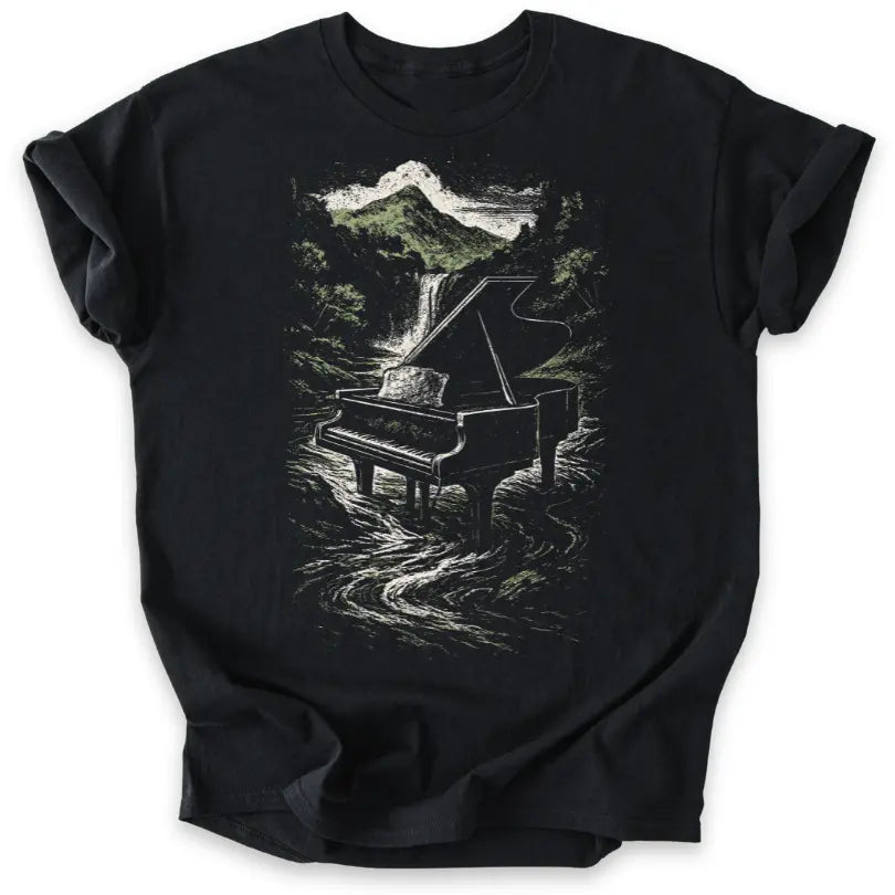Musik fließt wie Wasser – dieses Shirt verbindet die Kraft des Pianos mit der Schönheit der Natur.