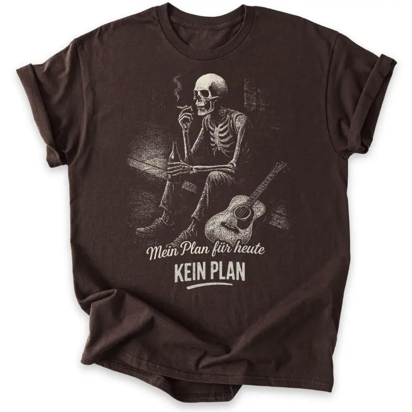 Das rauchende Skelett mit Gitarre und Flasche verkörpert Coolness, Gelassenheit und einen Hauch Rock’n’Roll.