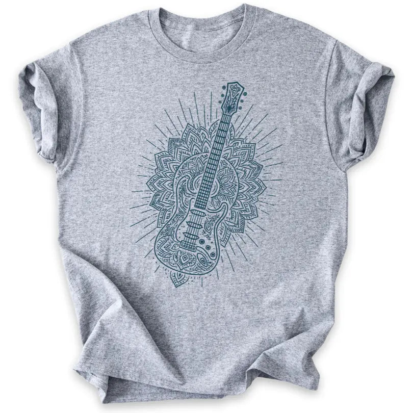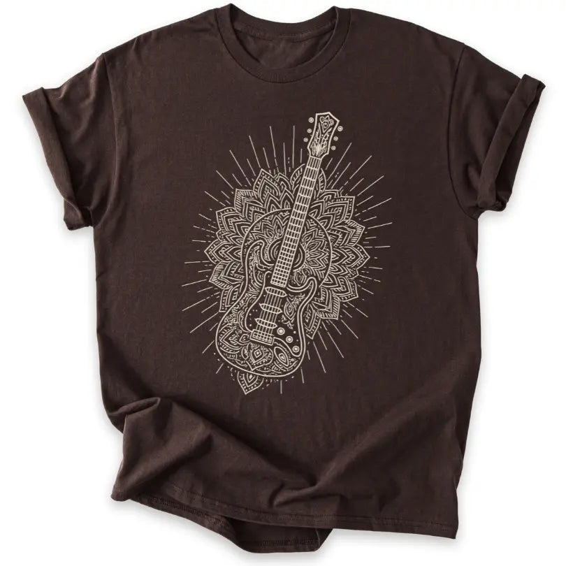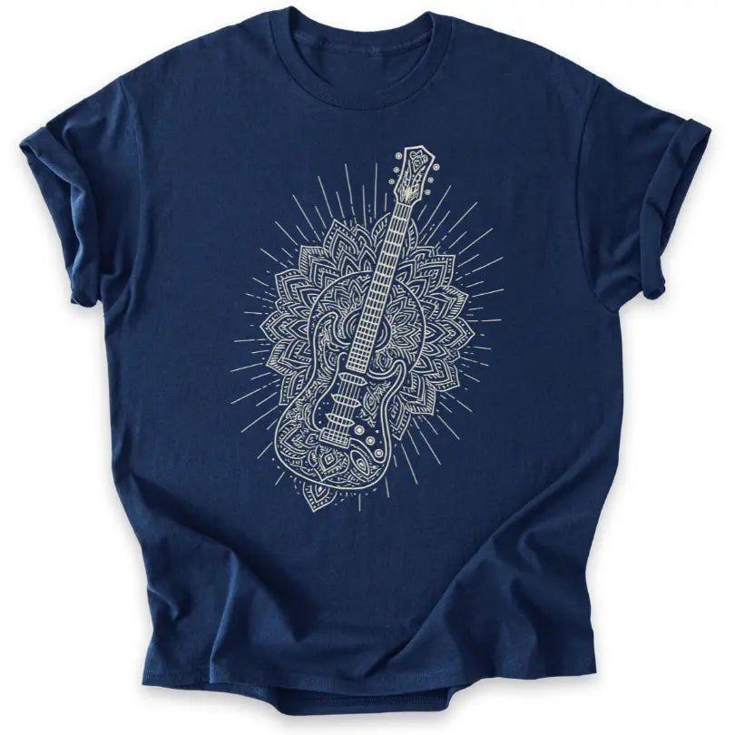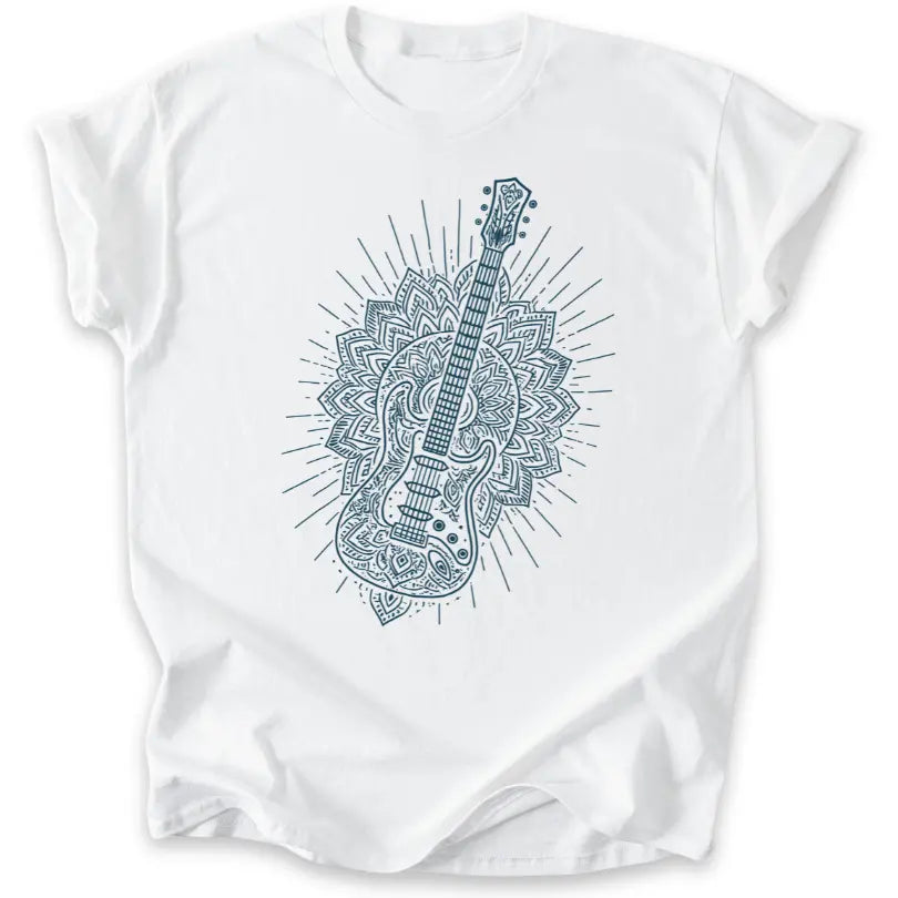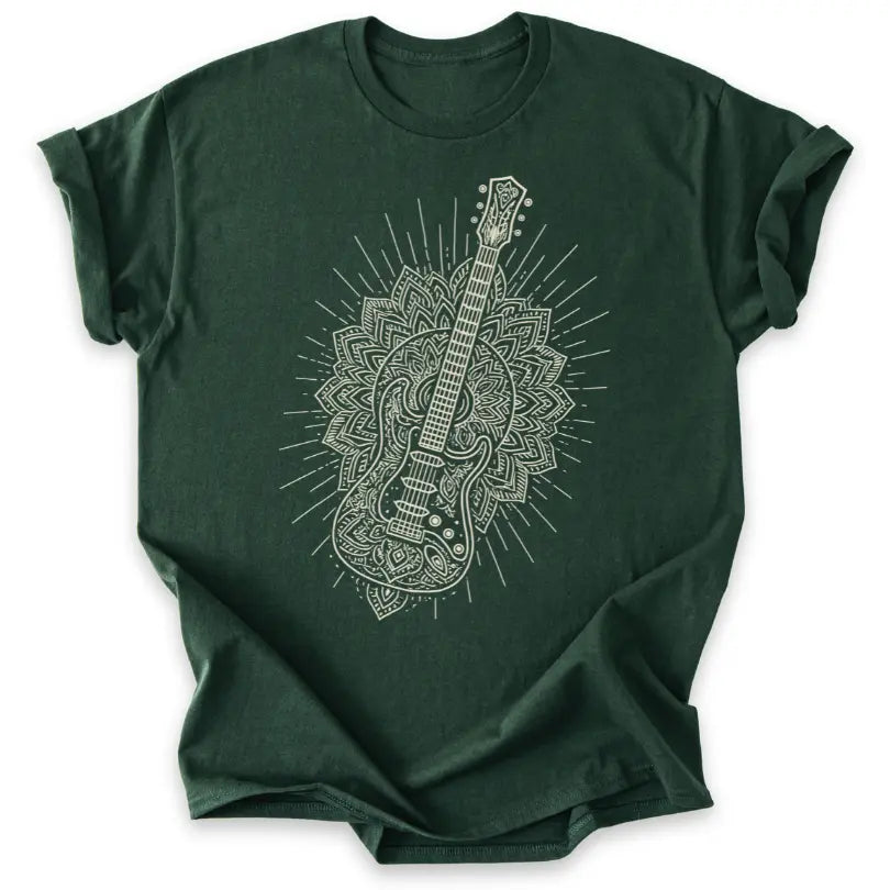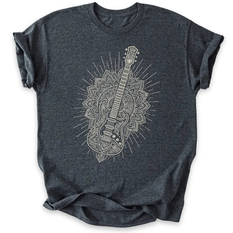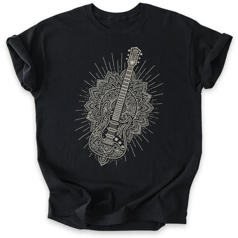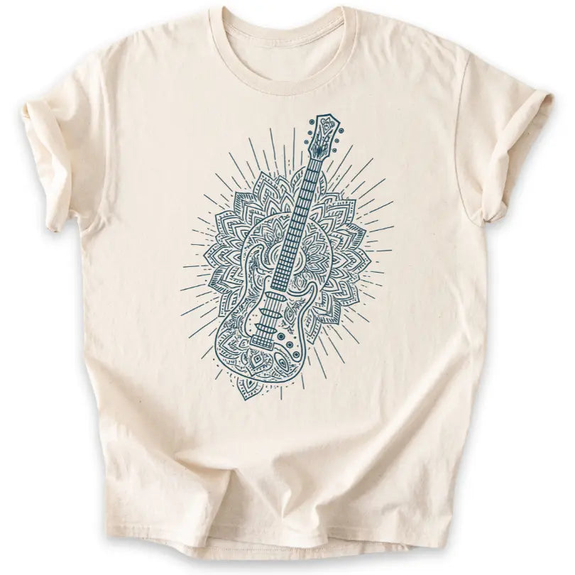 Musik als Meditation – dieses Shirt verbindet die Kraft der Gitarre mit spirituellen Mustern.