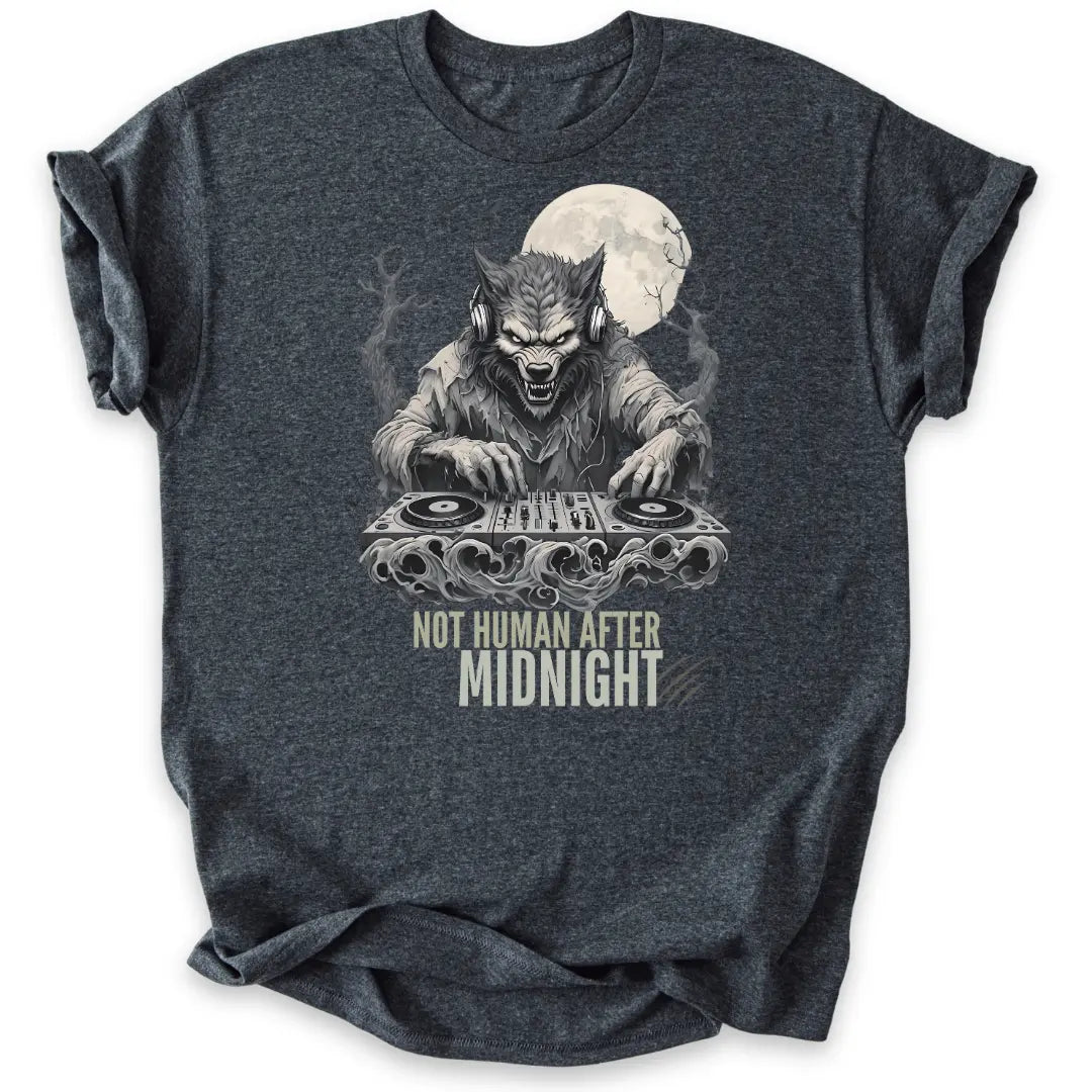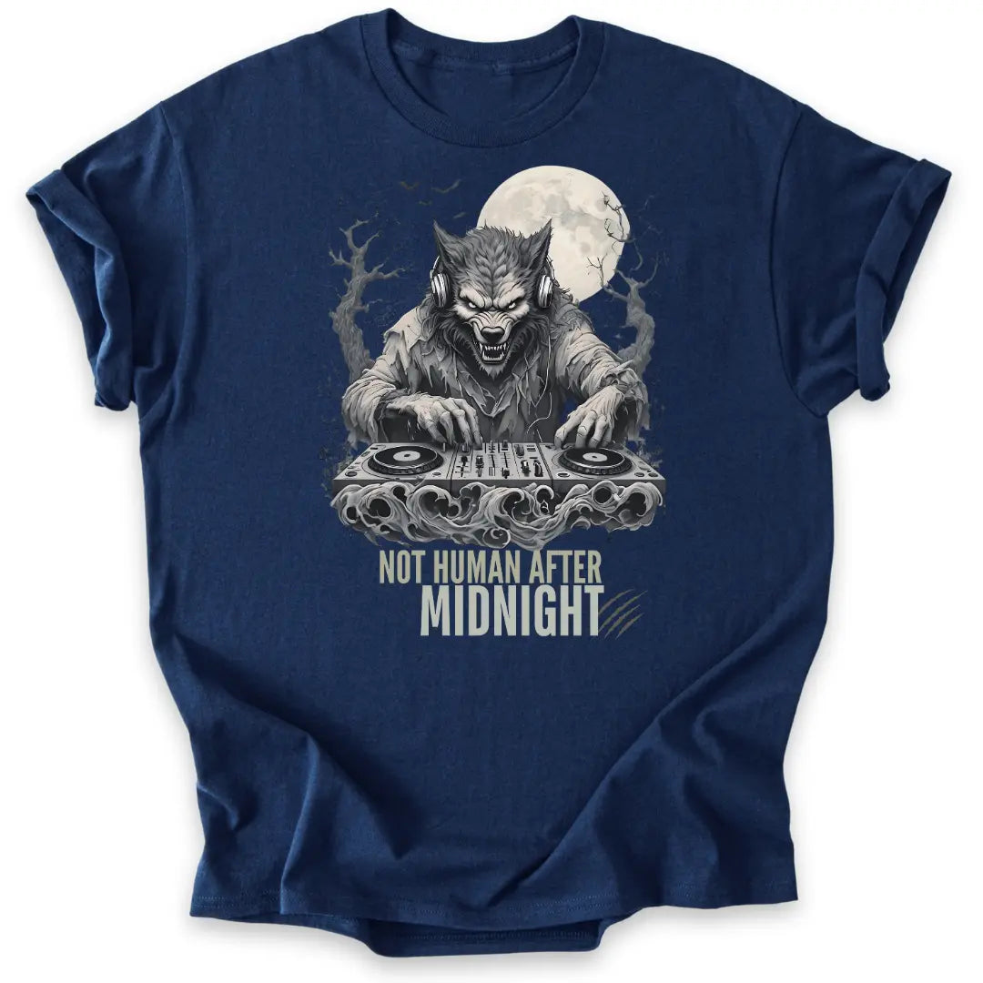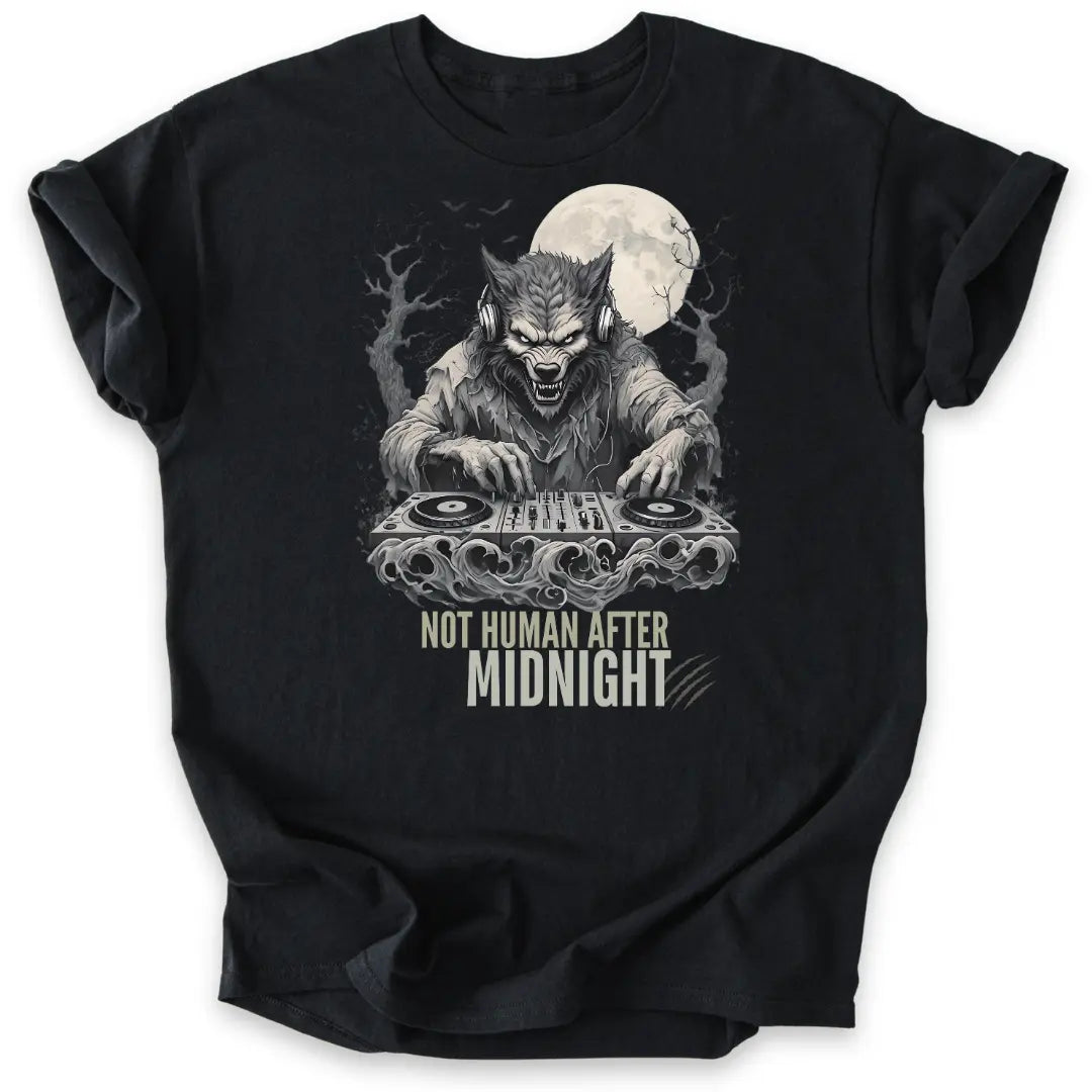 Dieses T-Shirt bringt düstere Nachtenergie auf die Bühne: Ein Werwolf am Pult, bereit, die Tanzfläche zu zerreißen.