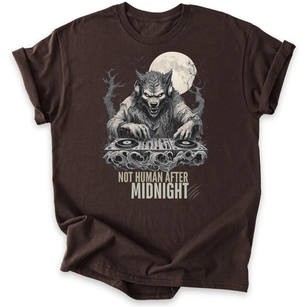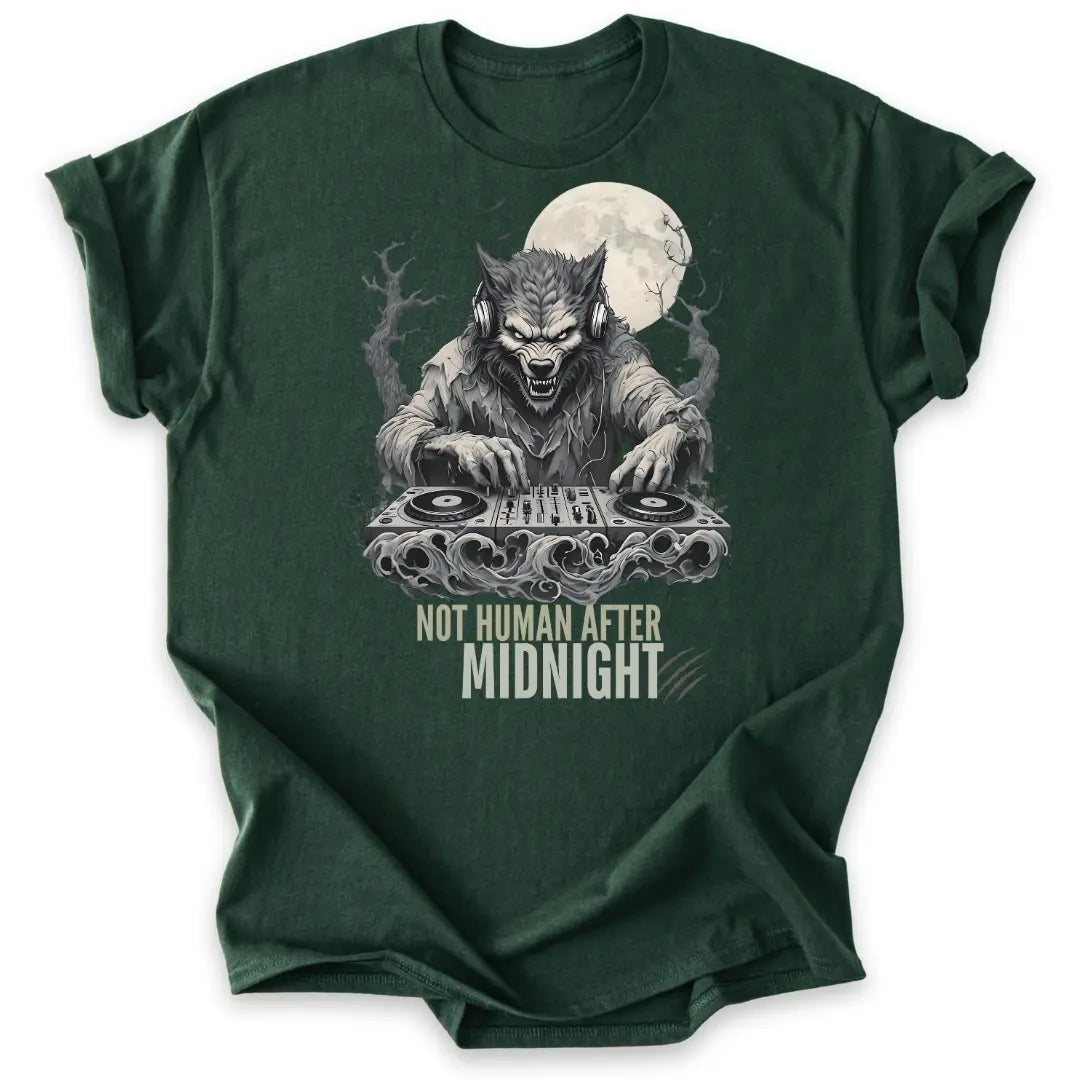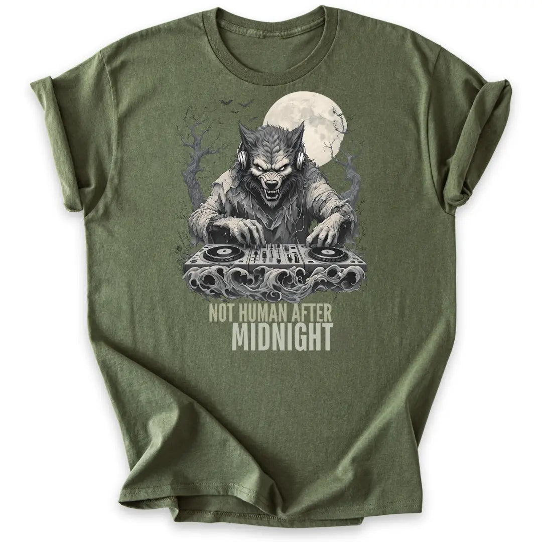Dieses T-Shirt bringt düstere Nachtenergie auf die Bühne: Ein Werwolf am Pult, bereit, die Tanzfläche zu zerreißen.