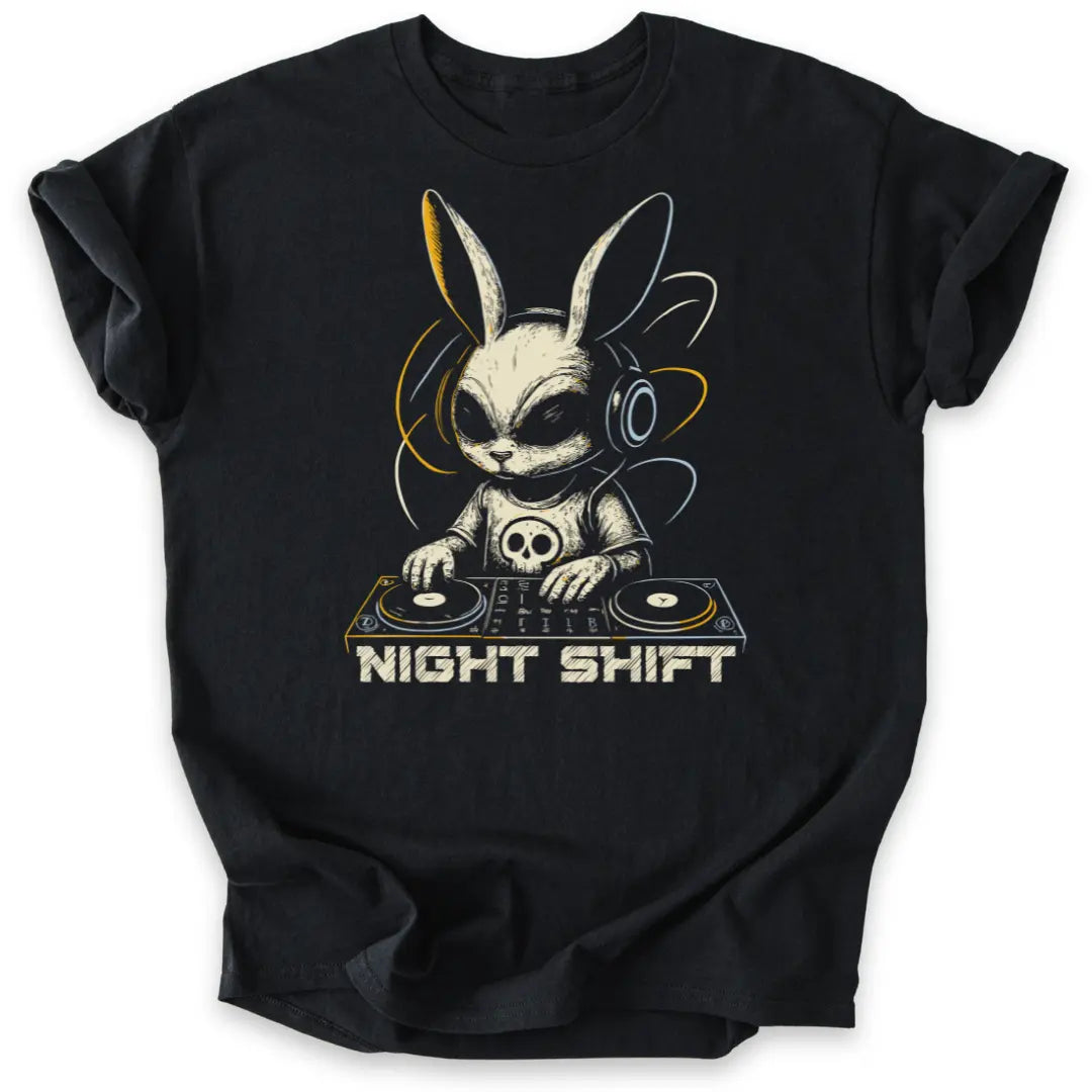 Wenn die Welt schläft, beginnt der Beat – dieses T-Shirt ist für alle Nachteulen, die den Rhythmus regieren.