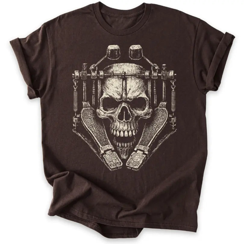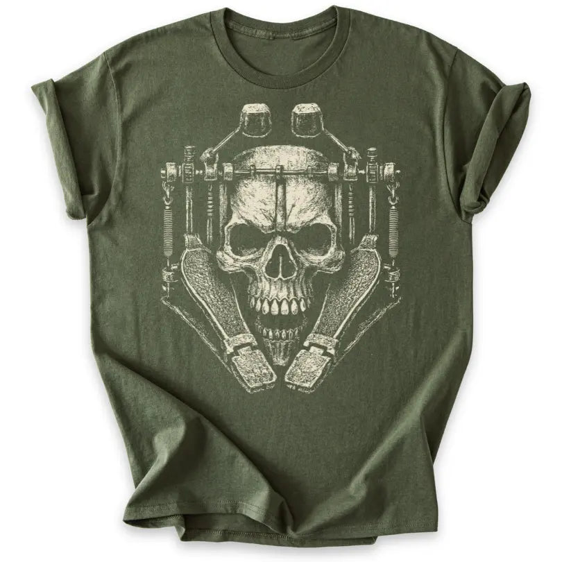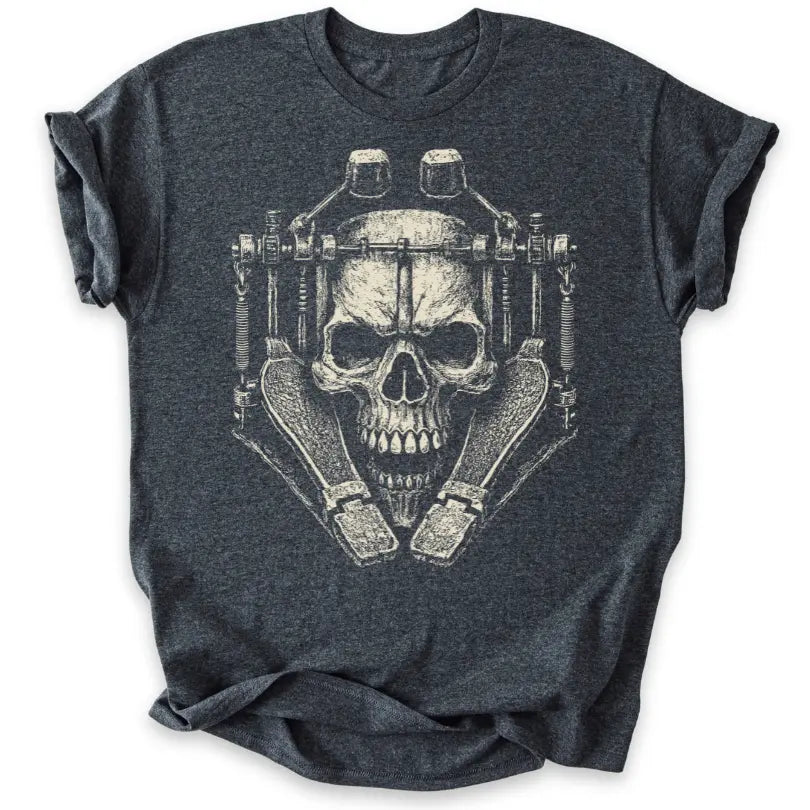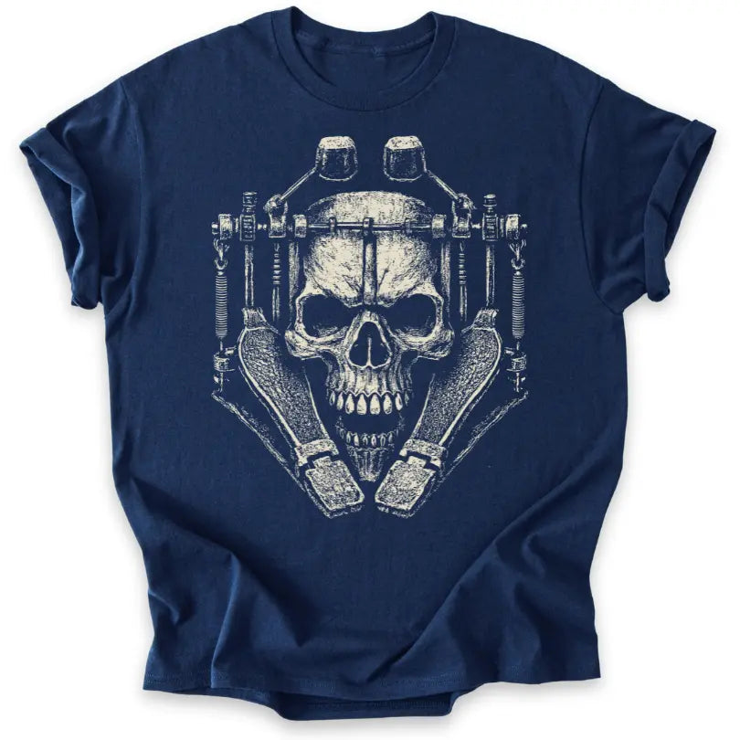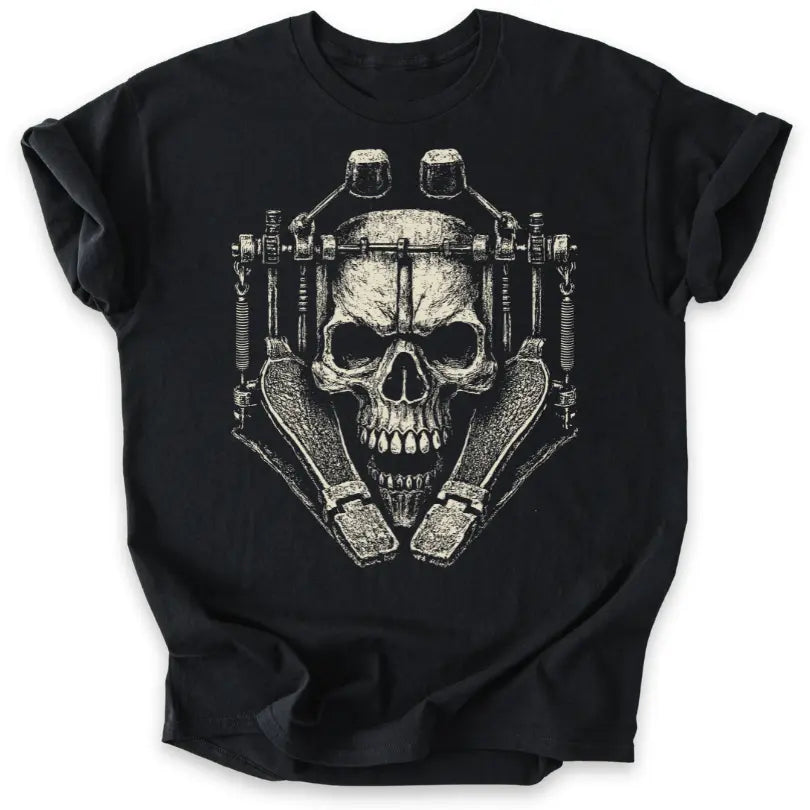 Doppelfußmaschine trifft Totenkopf – dieses T-Shirt ist pure Metal-Energie und ein Tribut an gnadenlose Blastbeats.