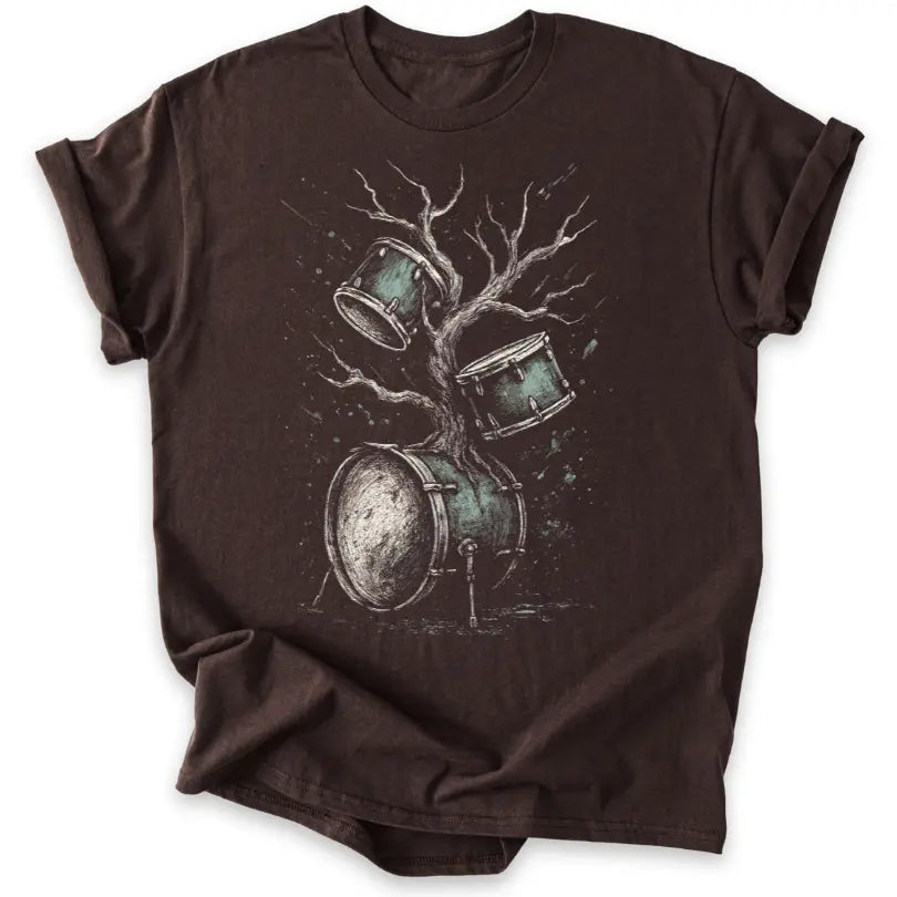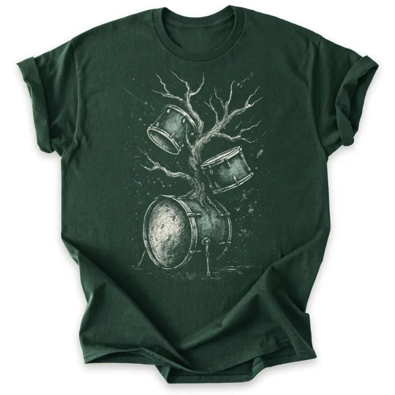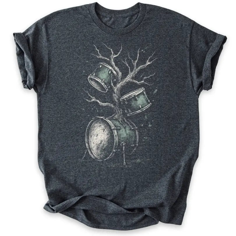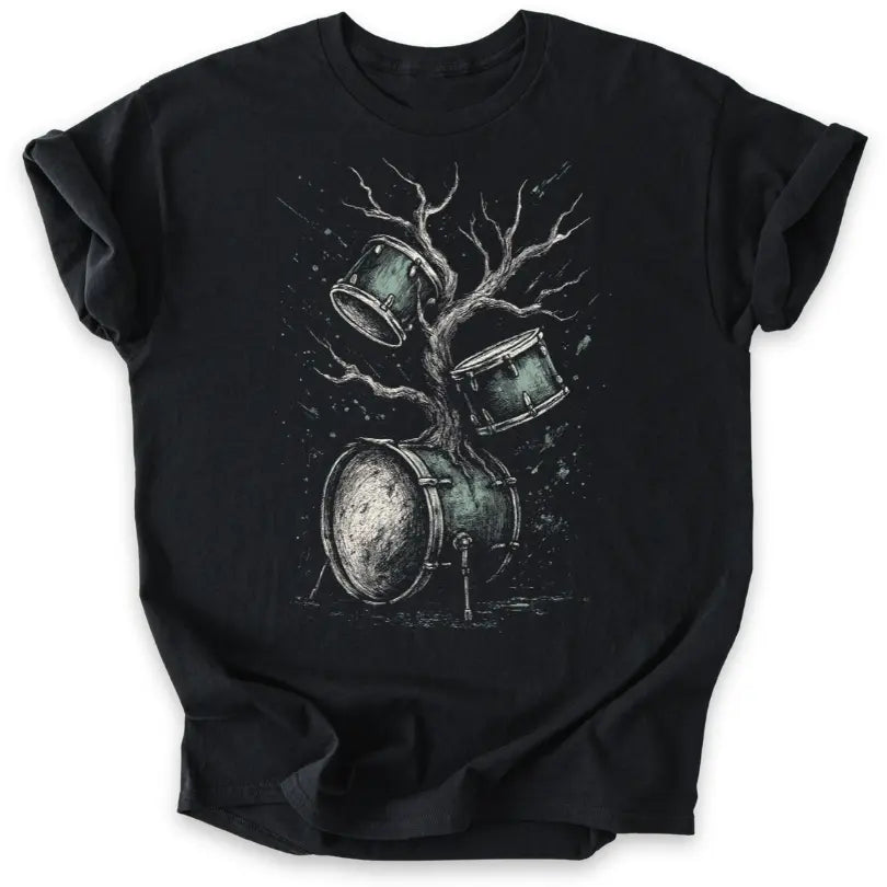 Ein T-Shirt voller mystischer Energie, das die Verbindung von Musik, Erde und purer Schlagzeug-Power zeigt.
