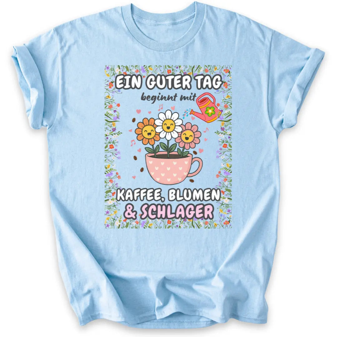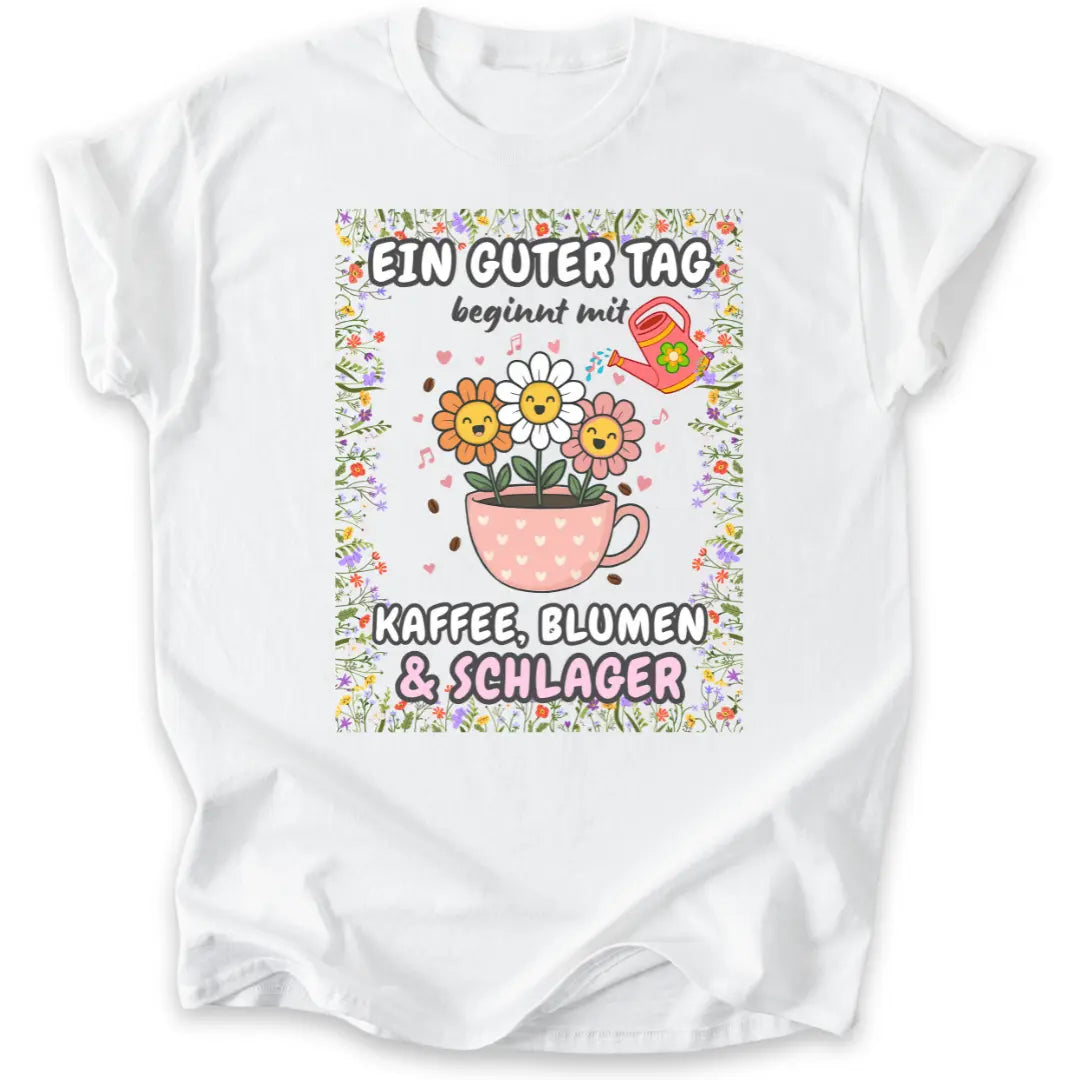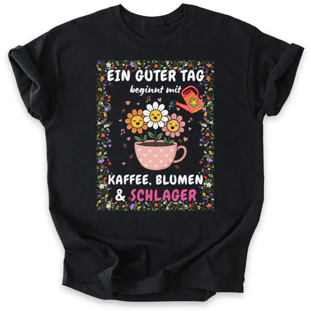 T-Shirt für Schlagerfans mit Herz, Humor und Kaffee-Vibes.