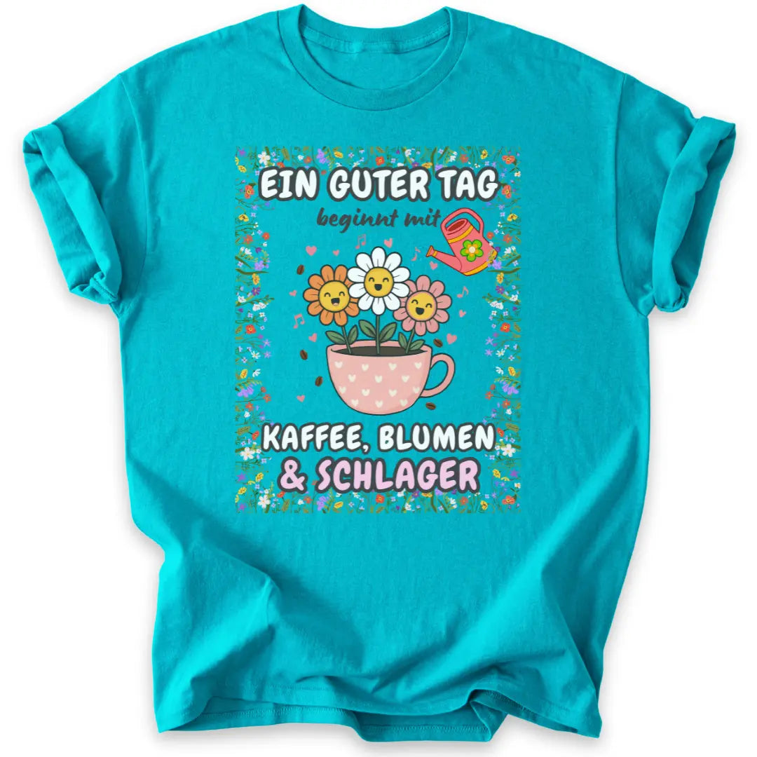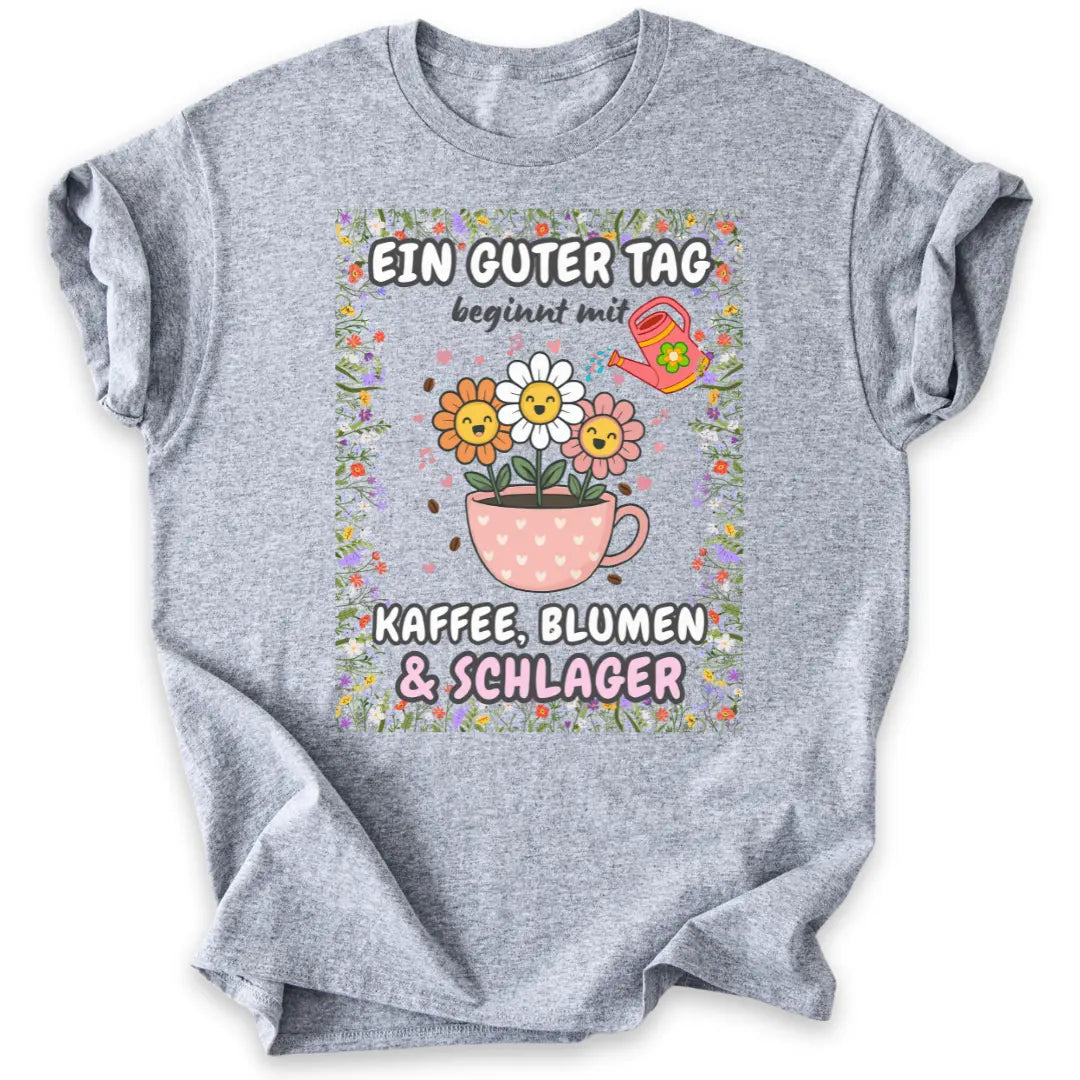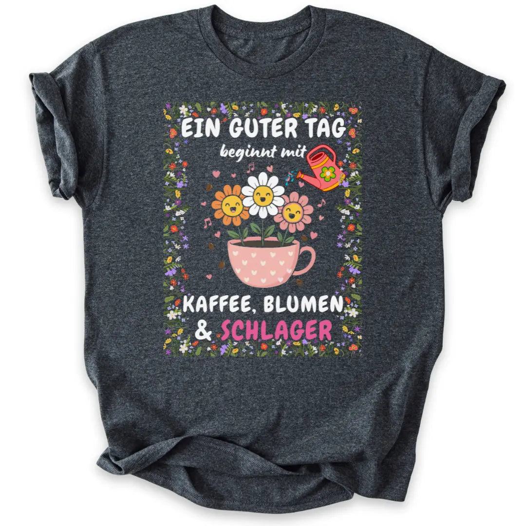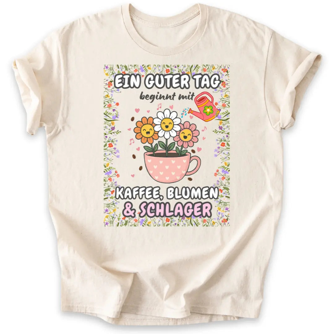 T-Shirt für Schlagerfans mit Herz, Humor und Kaffee-Vibes.