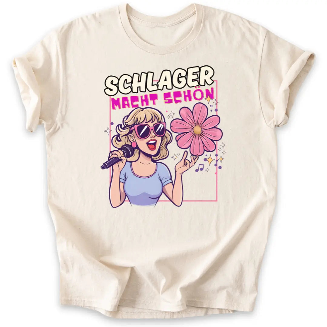 Dieses Shirt ist der beste Beweis: Schlager macht schön – und glücklich! Perfekt für Fans mit Stil, Humor und einer Portion Selbstironie. Ob auf dem Konzert, beim Feiern oder einfach als Liebeserklärung an deine Lieblingsmusik – du strahlst mit jeder Note.