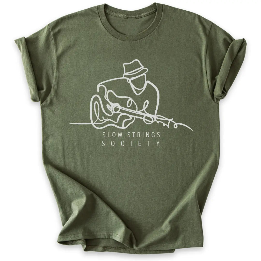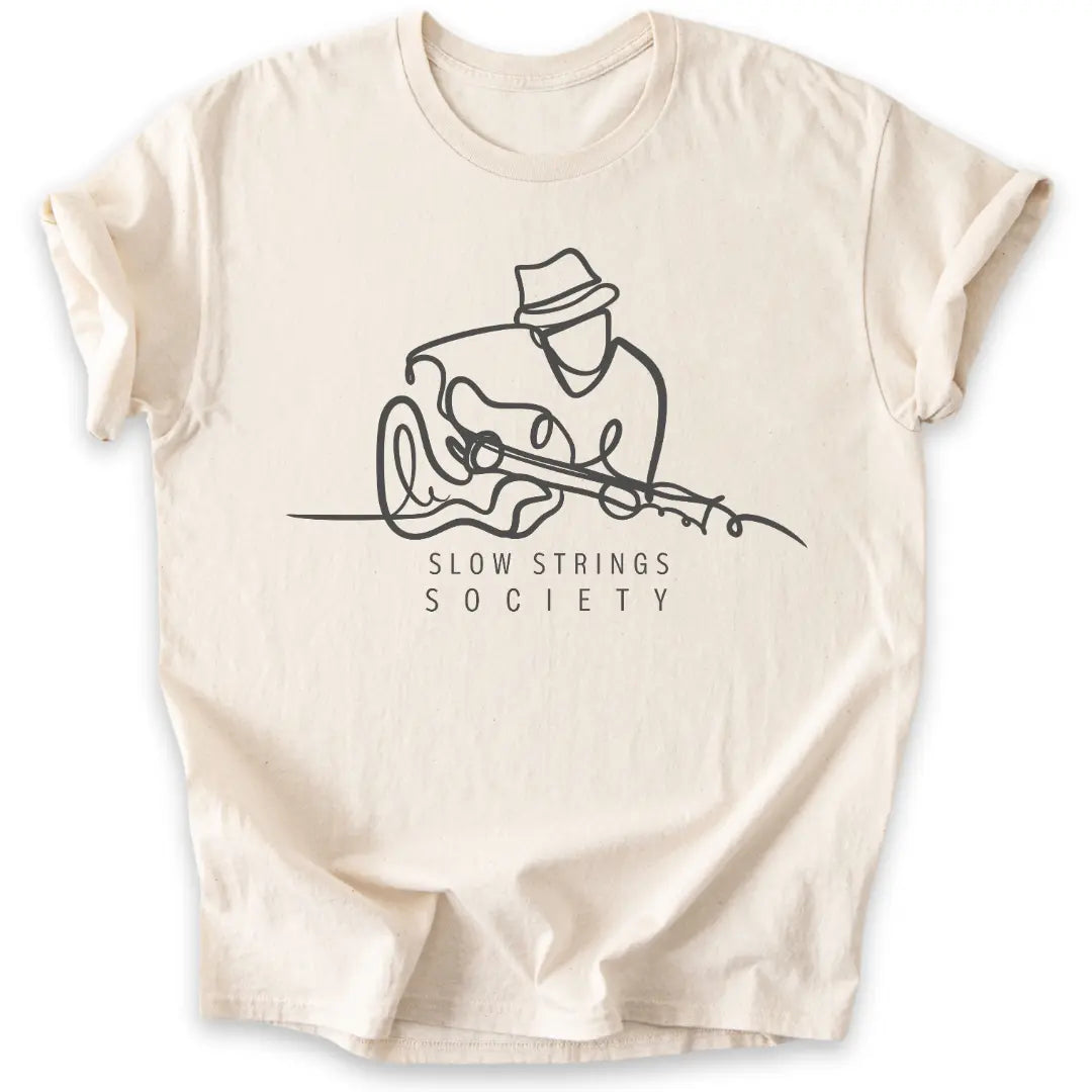 📦 Auch als Geschenk-T-Shirt für Gitarrist:innen, Slow-Jammer:innen & Klangmeditierende ideal.