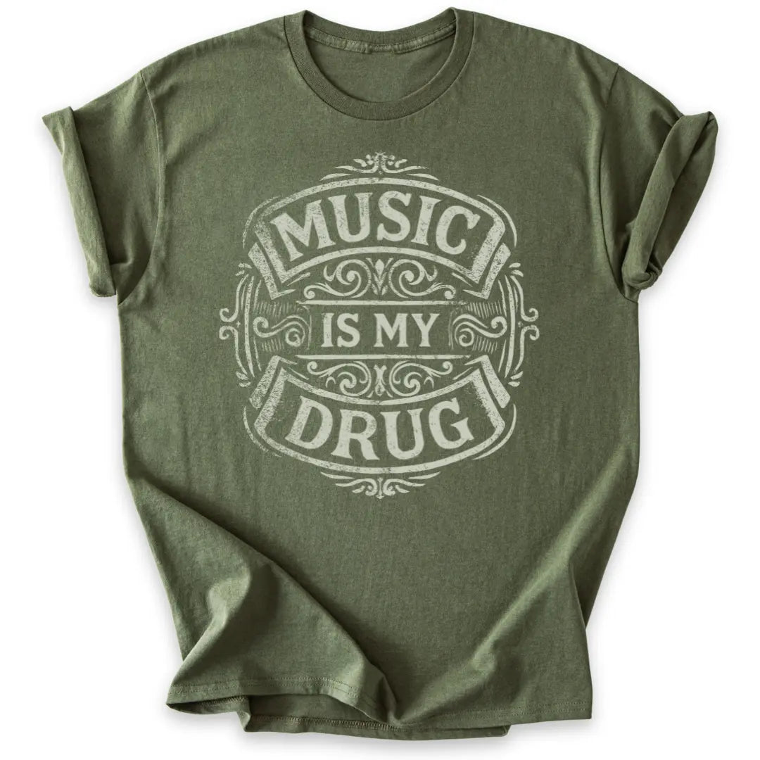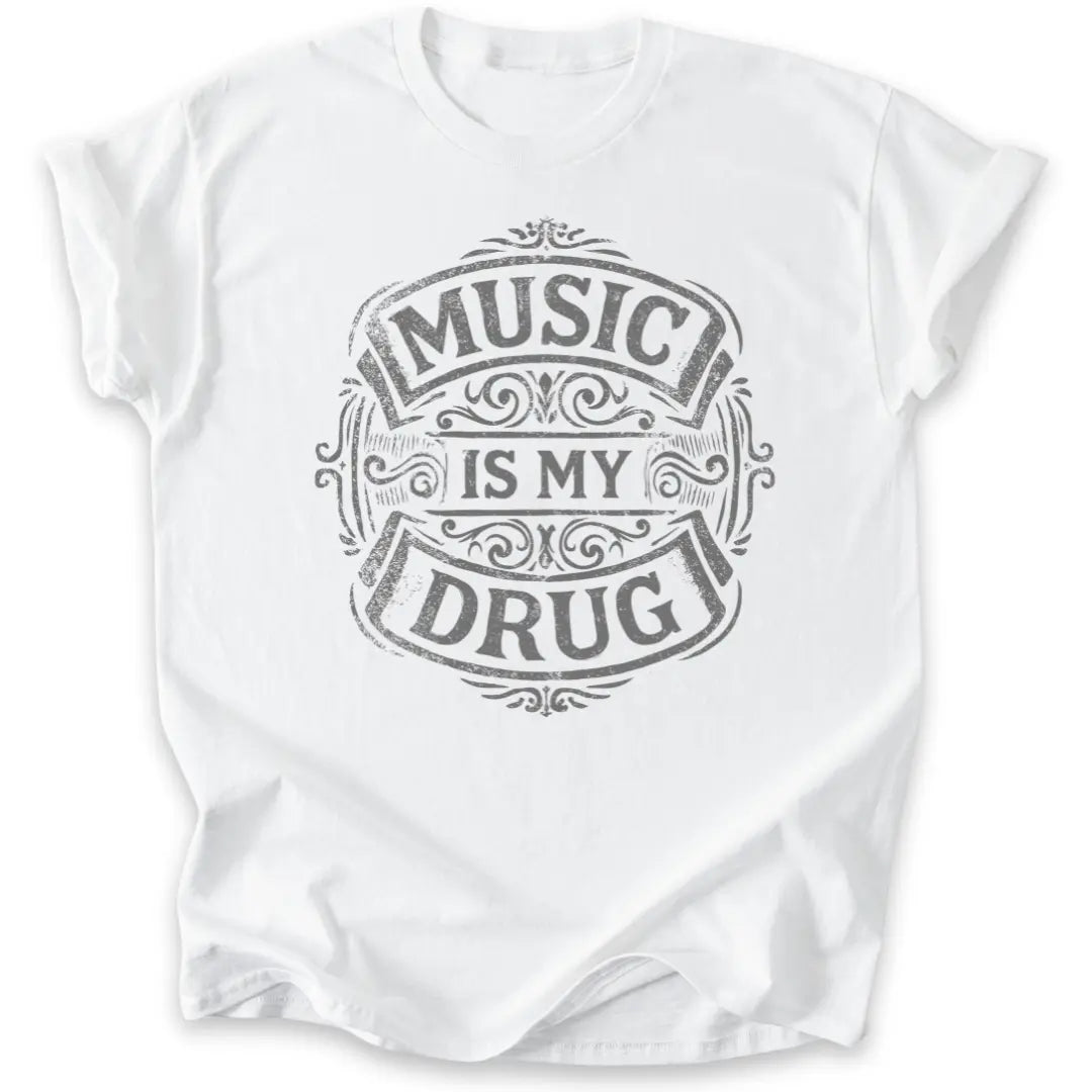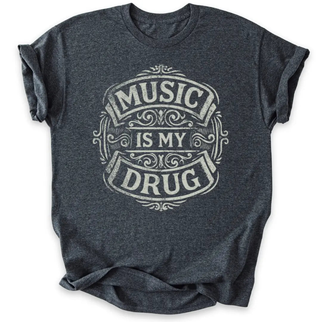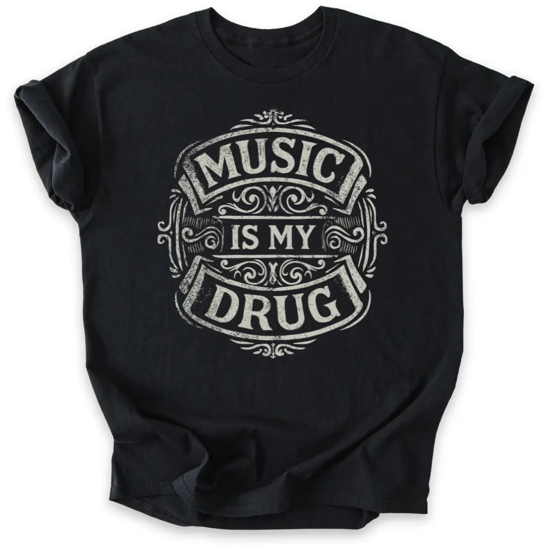 Musik heilt, treibt an und macht süchtig – dieses T-Shirt ist das Bekenntnis zur stärksten Droge der Welt.