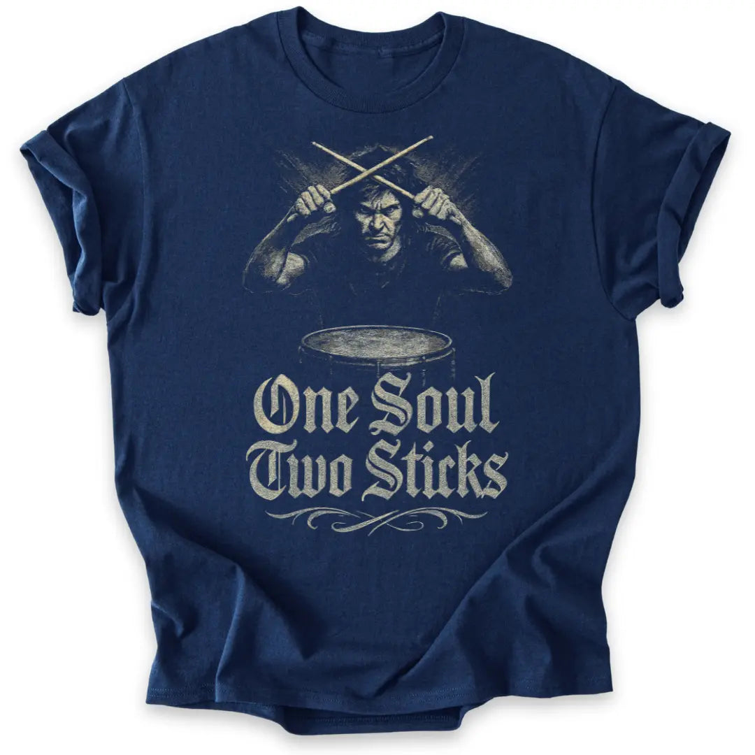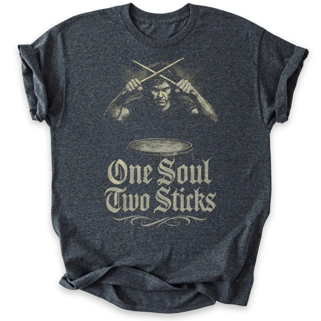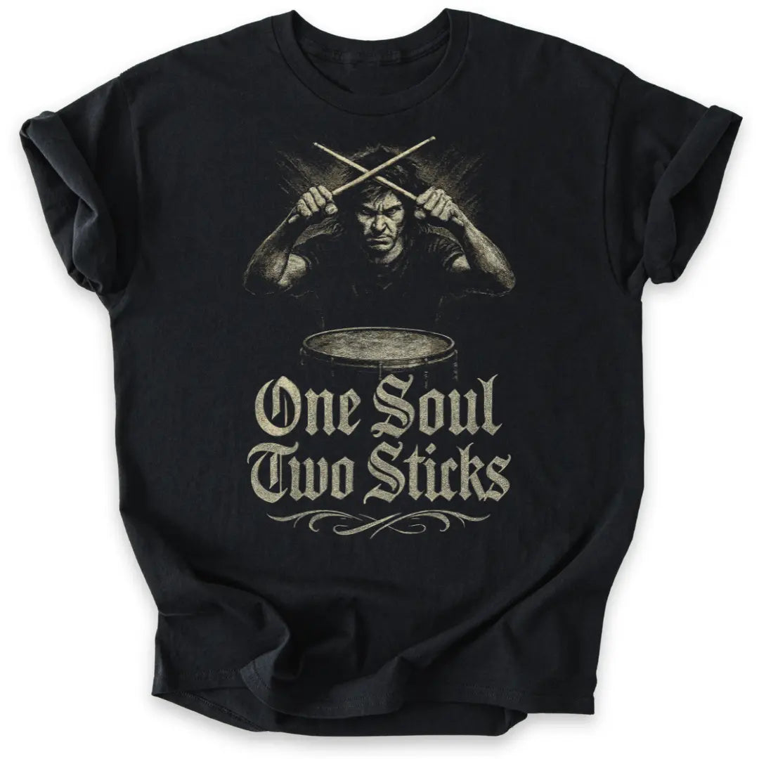 Eine Seele, zwei Sticks – dieses T-Shirt feiert die Leidenschaft und Kraft des Schlagzeugs.