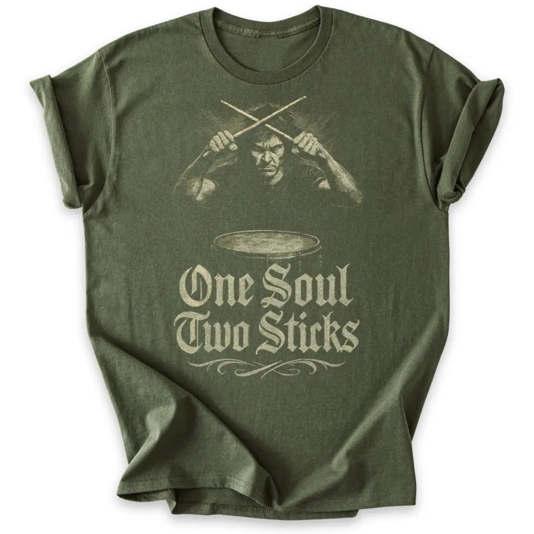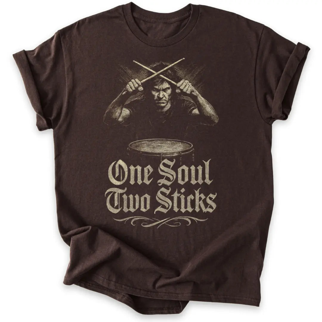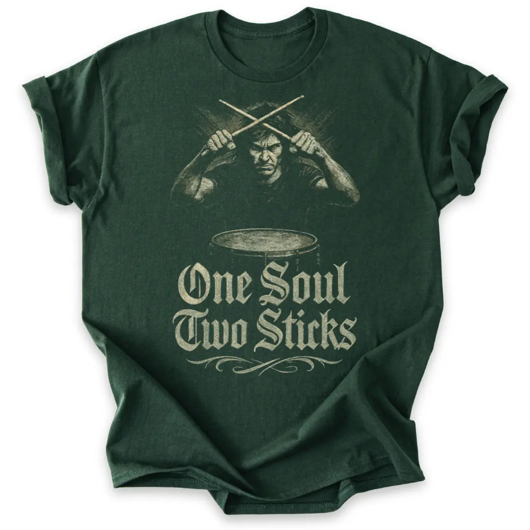 Eine Seele, zwei Sticks – dieses T-Shirt feiert die Leidenschaft und Kraft des Schlagzeugs.