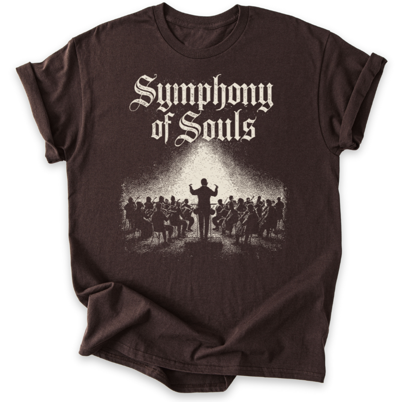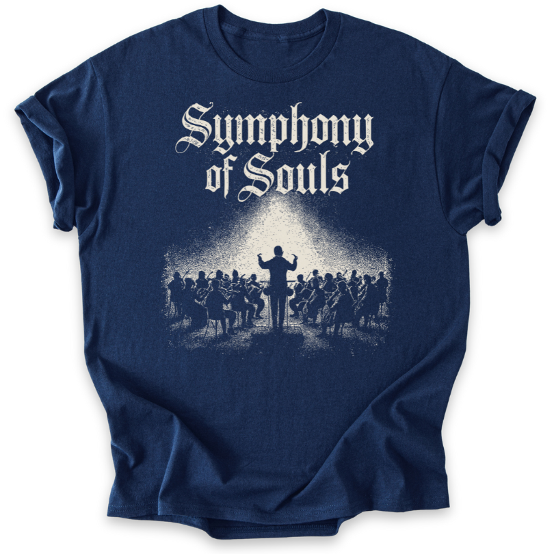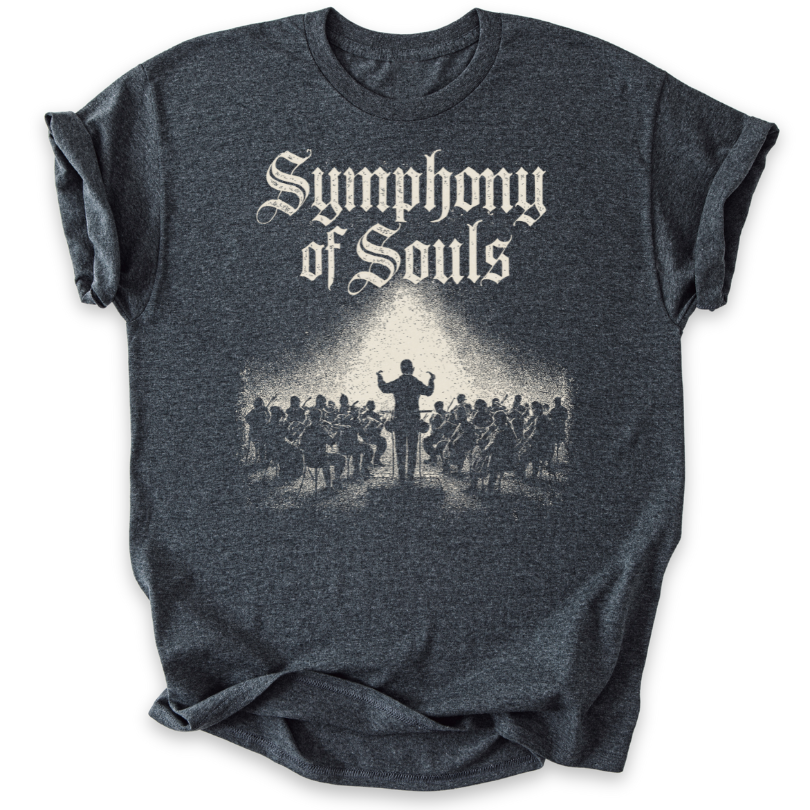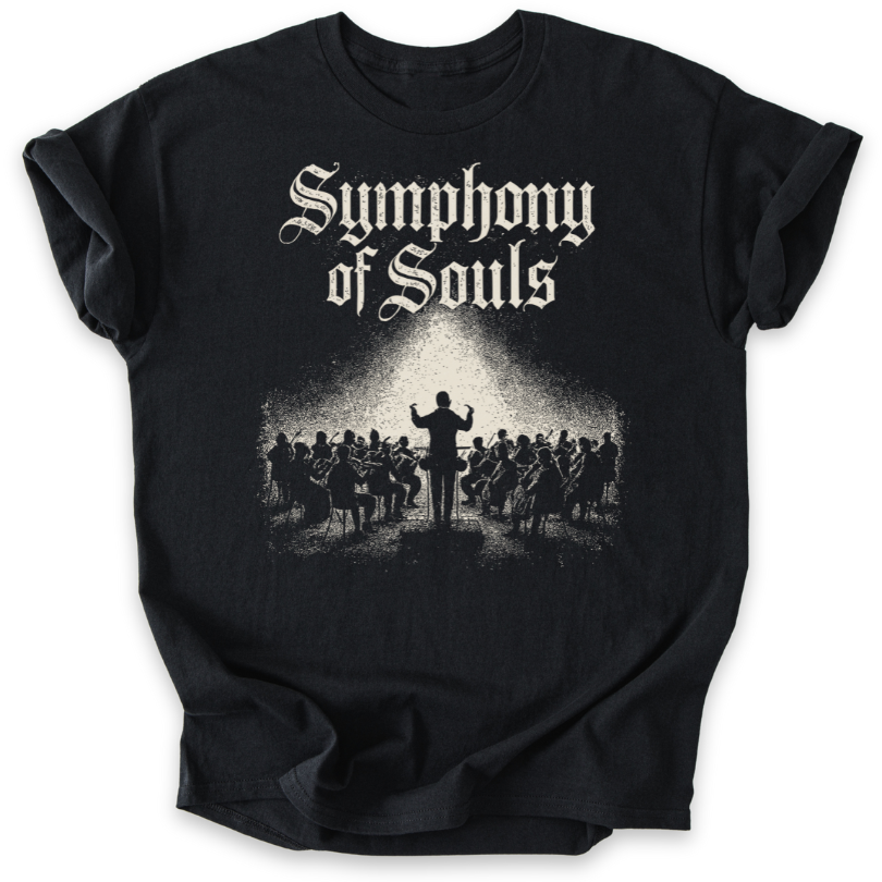 Dieses T-Shirt zeigt ein Orchester im mystischen Licht – ein starkes Symbol für Harmonie, Leidenschaft und die Magie der Musik.