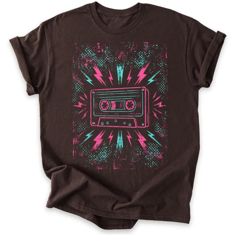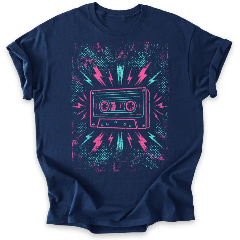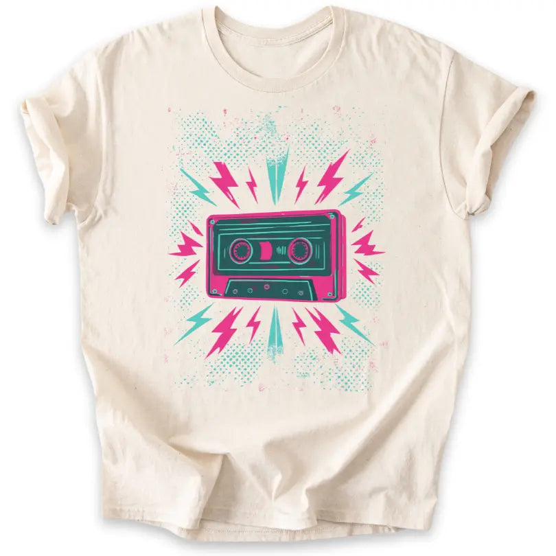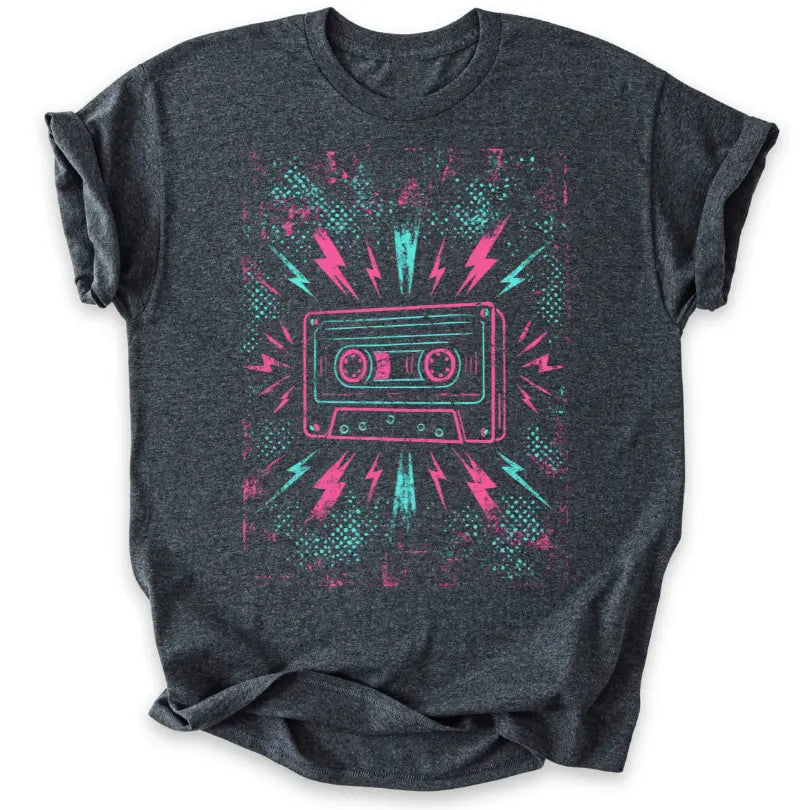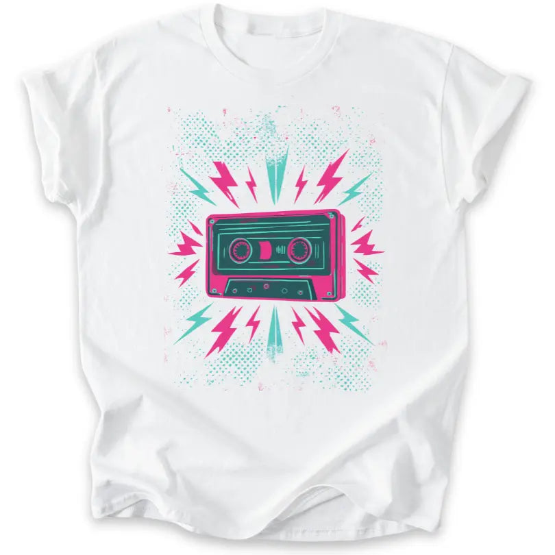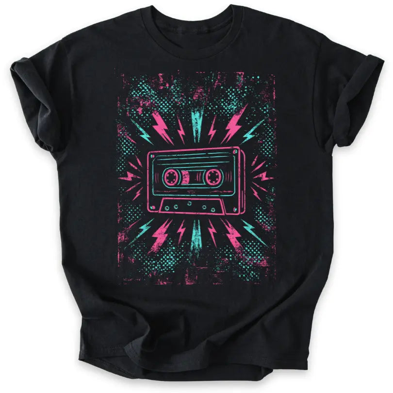 Retro trifft Future – dieses T-Shirt feiert die Energie der Kassette im knalligen Y2K-Look.