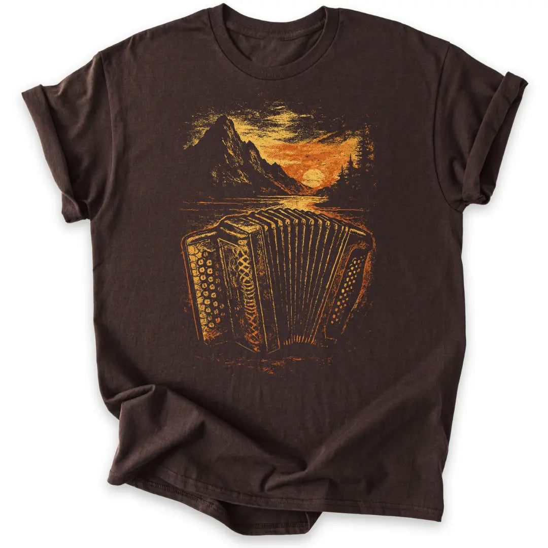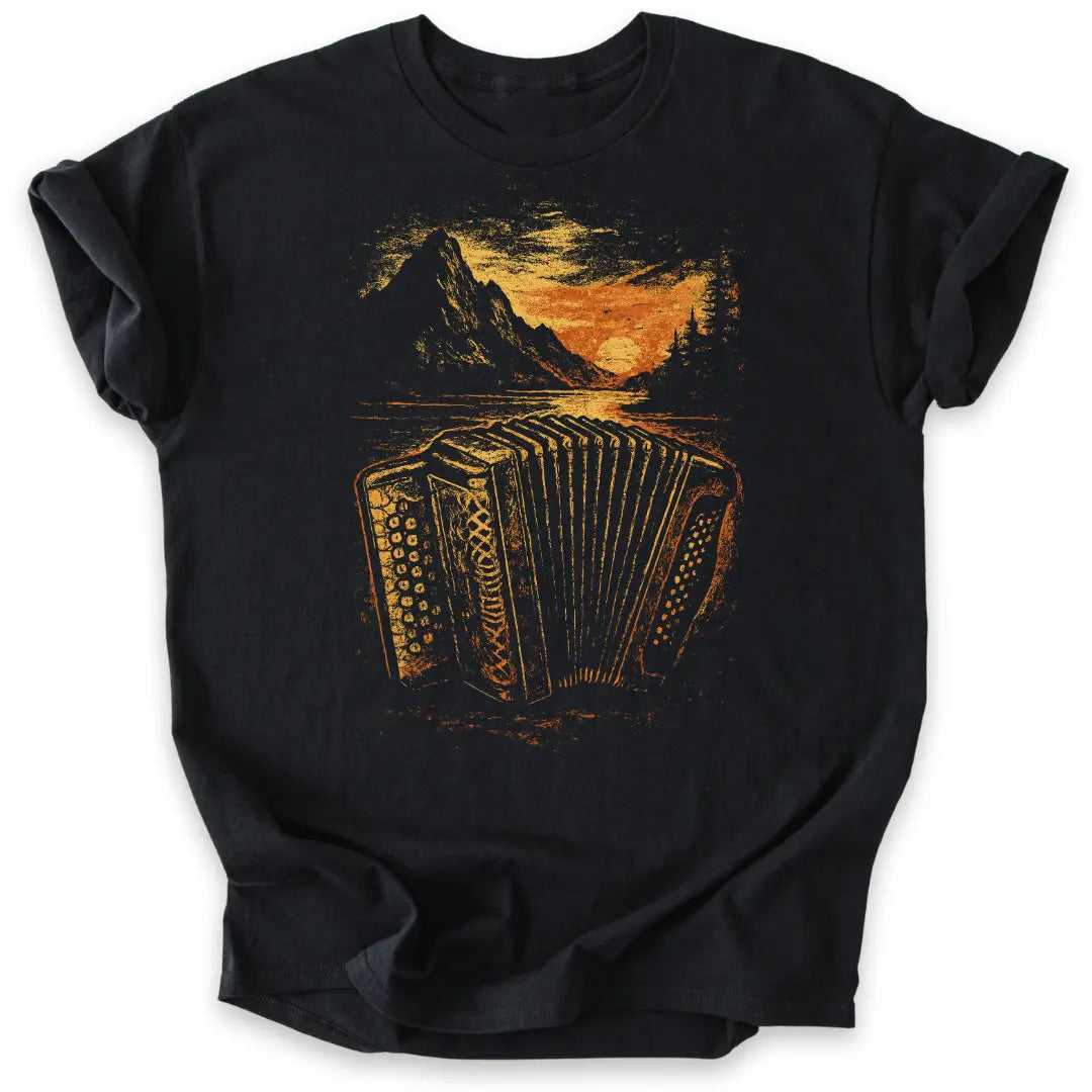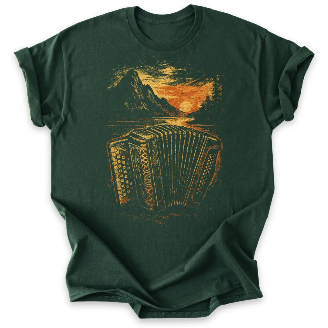📦 Auch als Geschenk-T-Shirt für Akkordeon-Liebhaber:innen, Alpenromantiker:innen & Musik-Natur-Verschmelzer ideal.