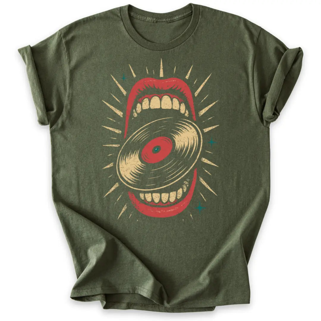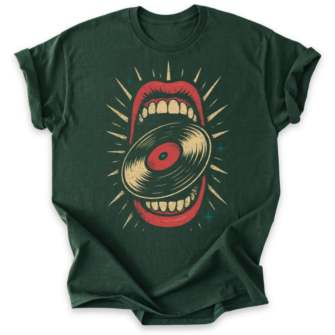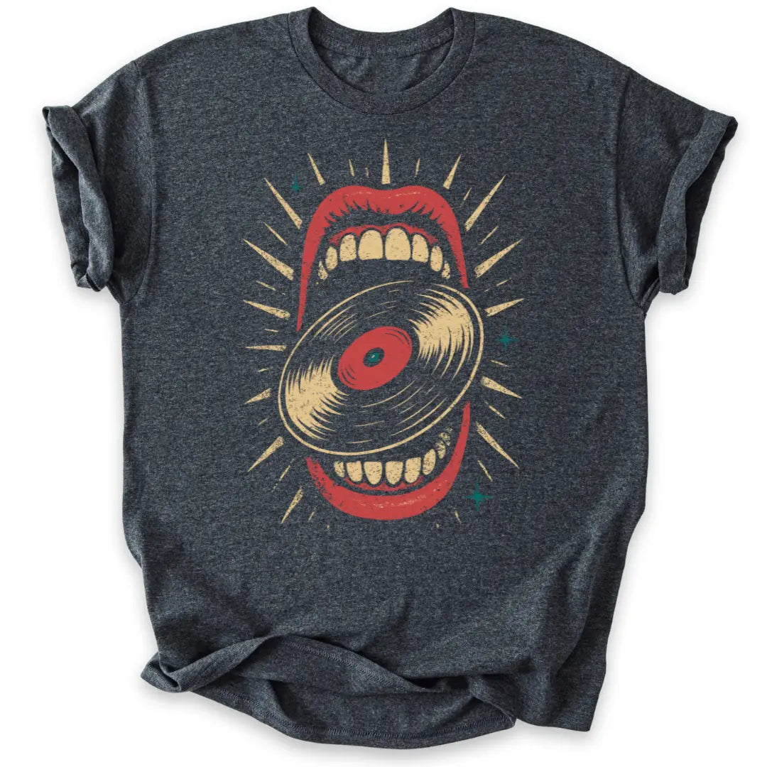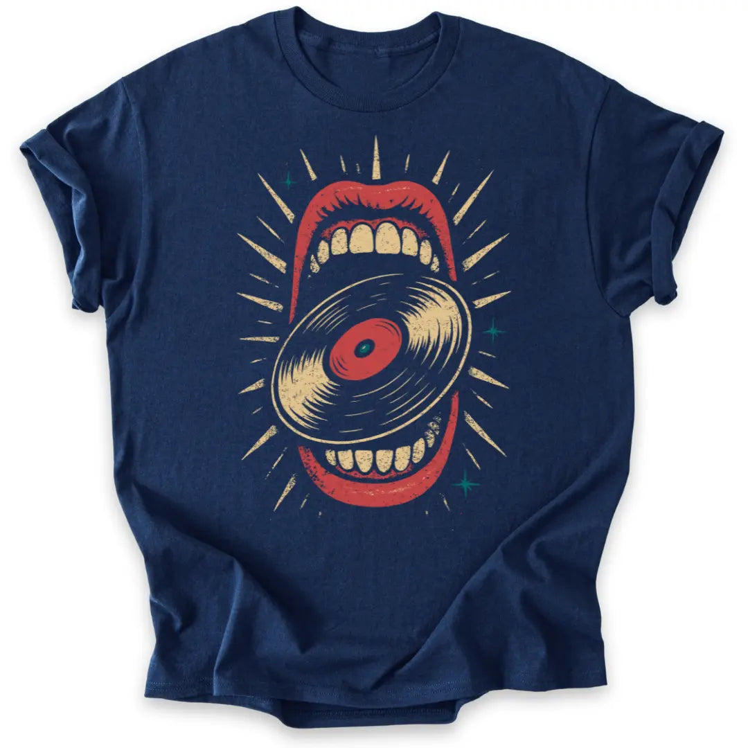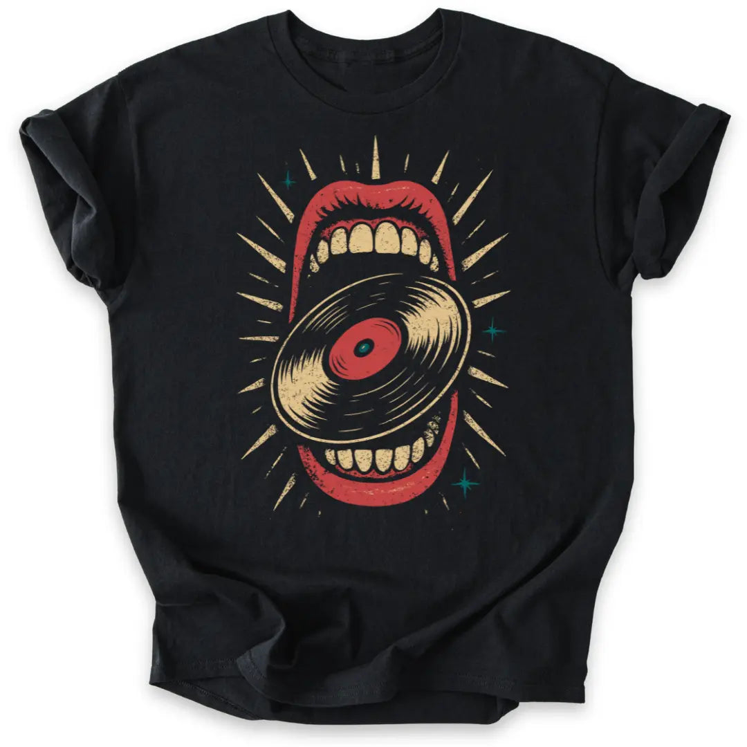 Hier wird Musik verschlungen – dieses Shirt ist pure Rebellion im Retro-Look.