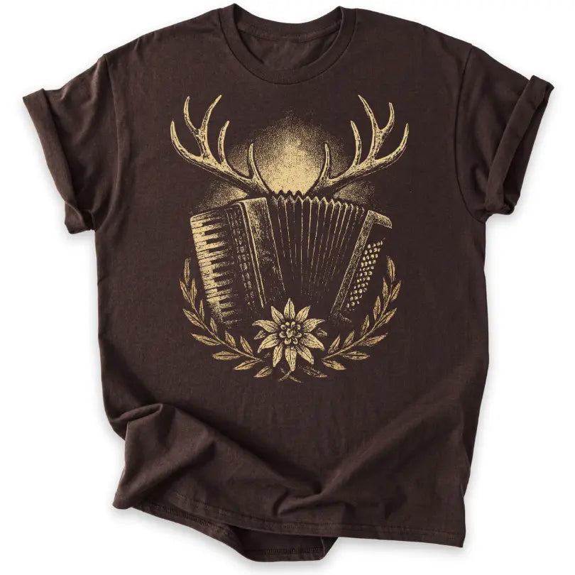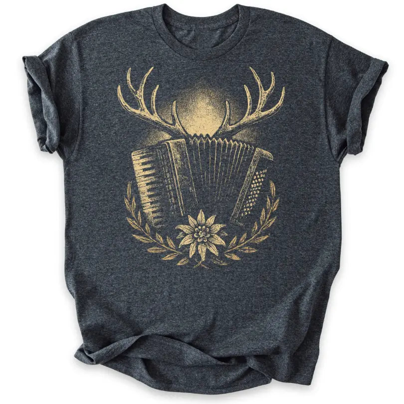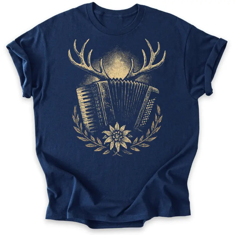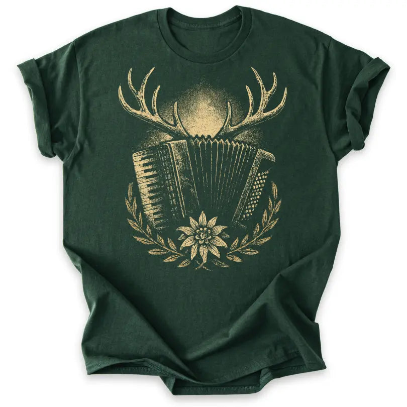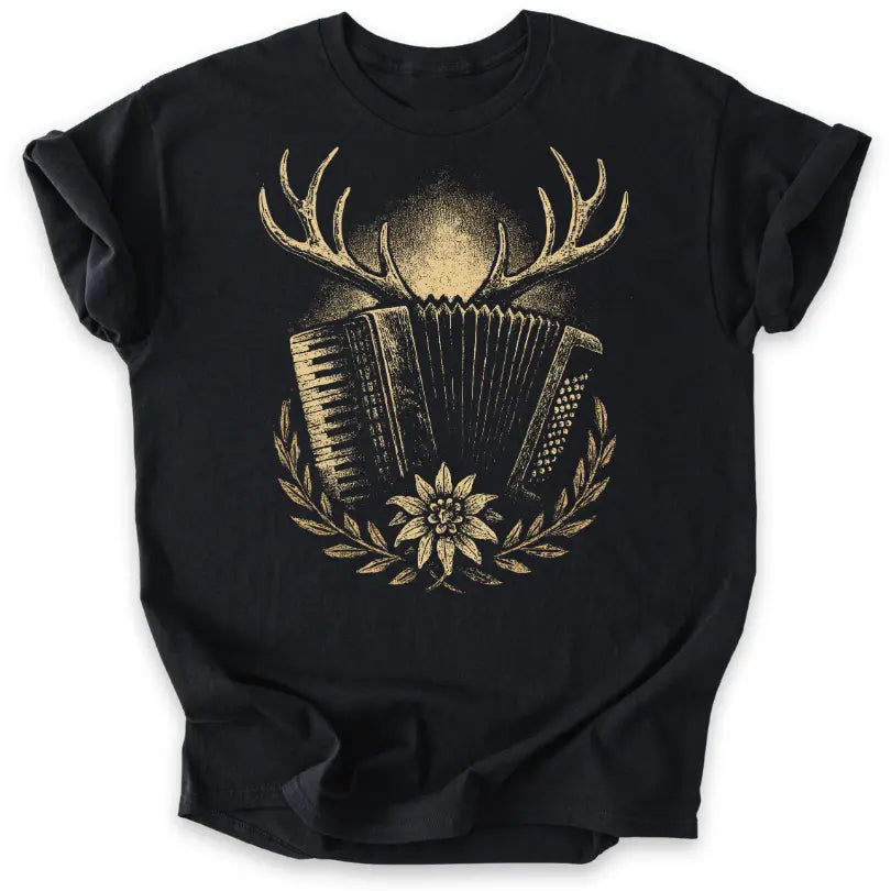 📦 Auch als Geschenk-T-Shirt für Harmonikaspieler:innen, Alpenfans & Volksmusikliebhaber:innen ideal.