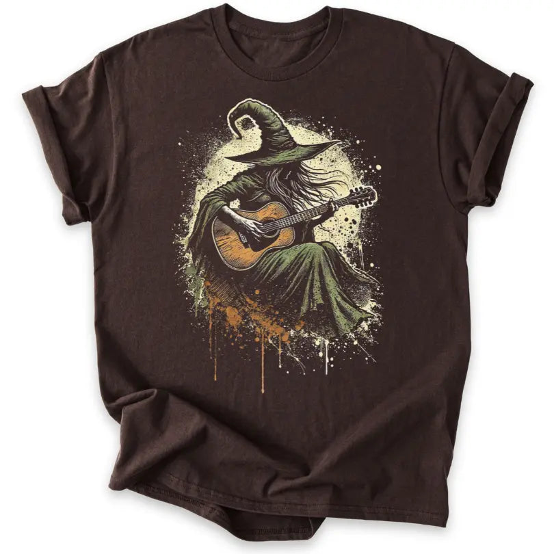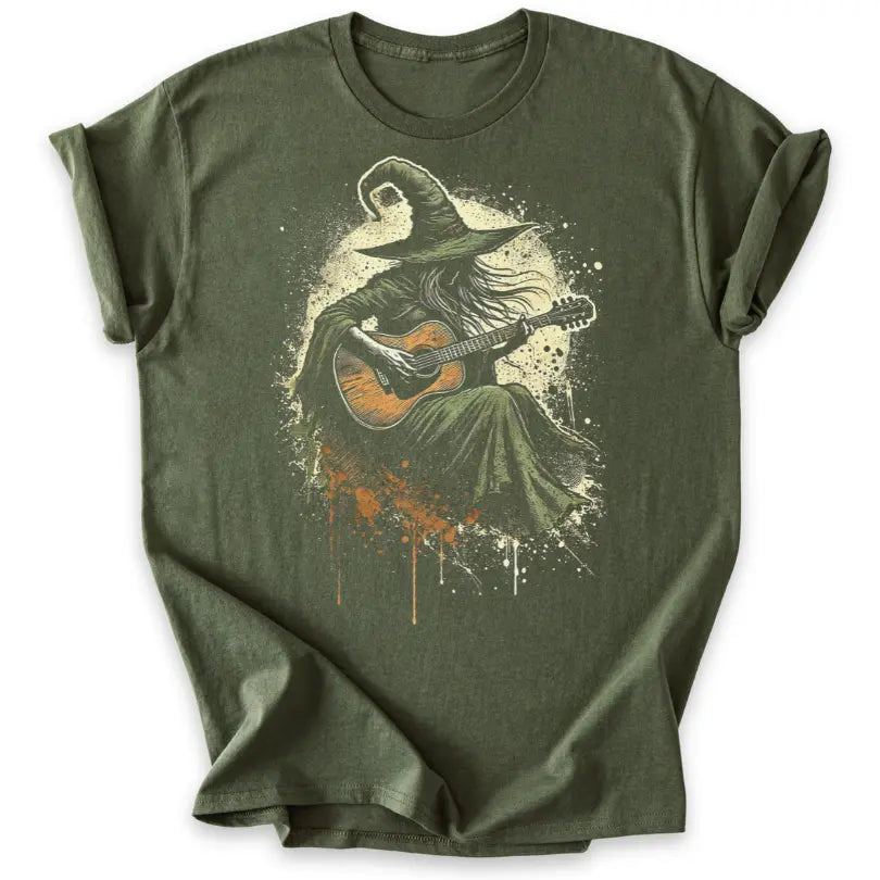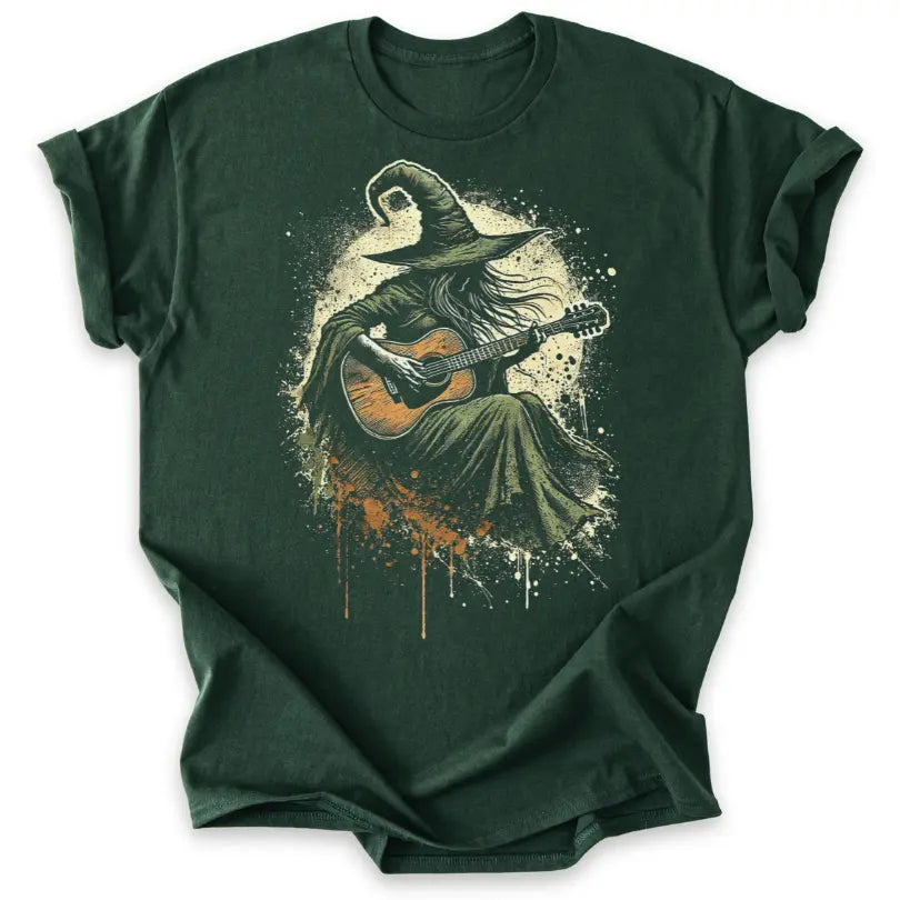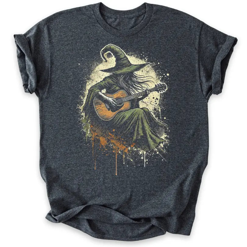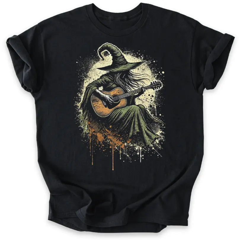 Die Hexe mit Gitarre unterstreicht deine Liebe zu mystischen Melodien und kraftvollen Akkorden.